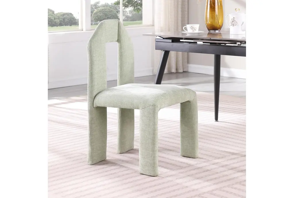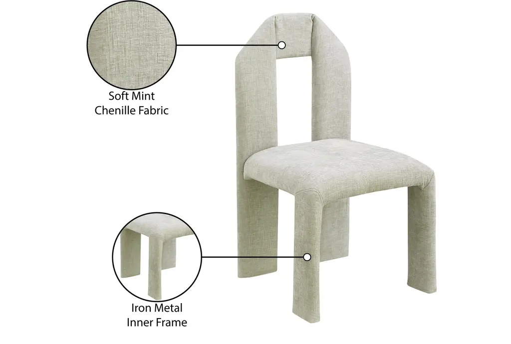 Enhance your dining experience with the Brennan Mint Chenille Fabric Dining Chair Set of 2. These armless chairs feature a modern design that seamlessly fits into any dining room or kitchen. The mint chenille fabric provides a soft and inviting touch, making every meal more comfortable.