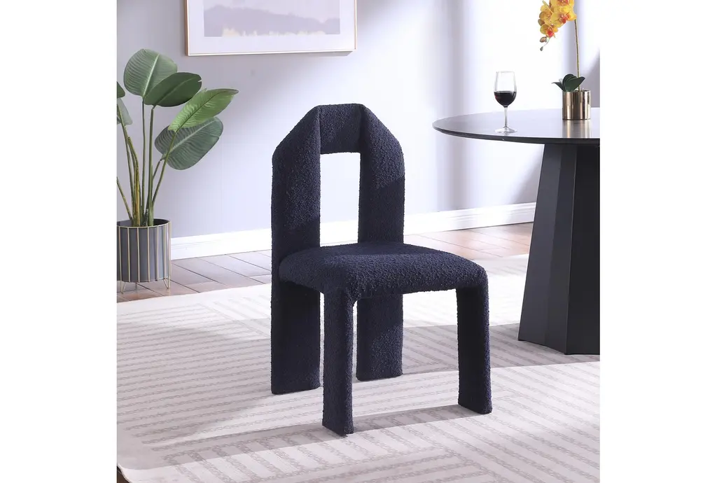Enhance your dining experience with the Brennan Navy Boucle Fabric Dining Chair Set of 2. These modern, armless chairs are designed to bring a touch of sophistication to your dining room or kitchen. The navy boucle fabric adds a rich texture and depth to your space, making every meal a stylish affair.