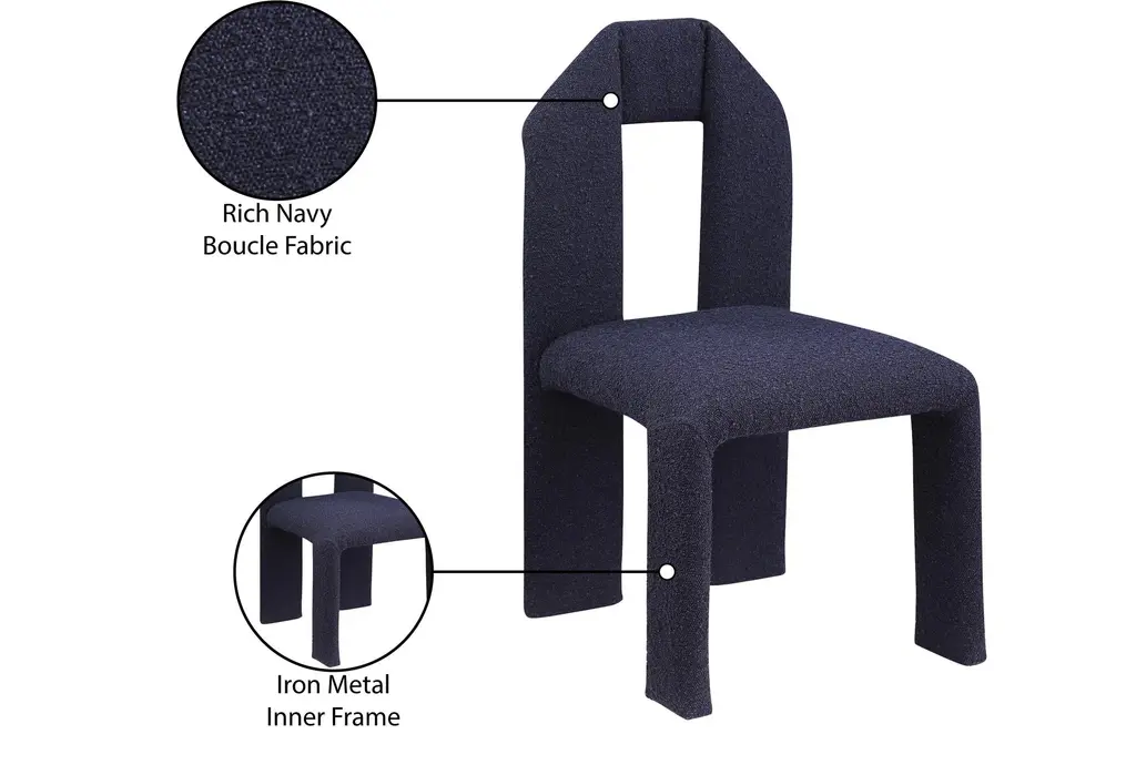 Brennan Navy Boucle Fabric Dining Chair Set Of 2 | Armless