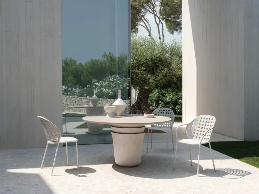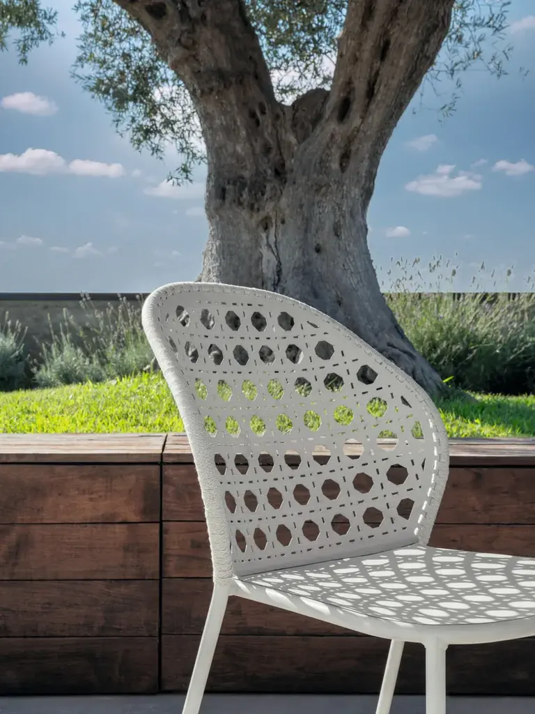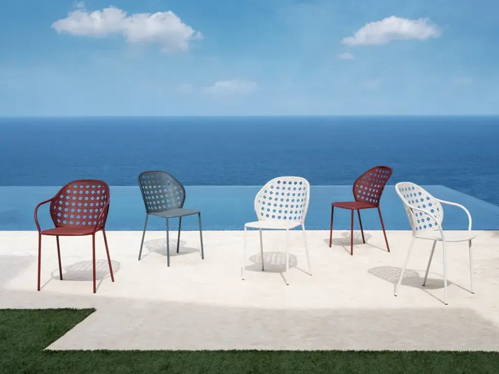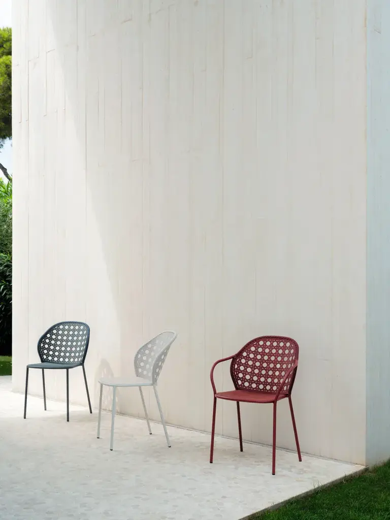 Brise 24 is a stainless steel garden chair with armrests.The freedom to compose the space around the outdoor table inspires the Brise chair proposal, in tubular stainless steel with seat and back in WoodEvolution. It is precisely the processing of the backrest in laser-carved WoodEvolution that identifies what is peculiar to the Brise collection: the creation of a perforated texture reminiscent of Vienna straw. The backrest elements are fixed to the structure with a precious tone-on-tone coloured nautical webbing.The Gervasoni Outdoor collection is the result of a careful selection of natural and technical materials worked with skillful craftsmanship and innovative technologies. The company’s products adapt to different styles of outdoor living, furnishing – with absolute ease, elegance and free customisation – terraces, gardens or swimming pools, from the most urban and contemporary to the most sophisticated or surrounded by nature. Each place has its own unique character that must be respected and enhanced. The key features of the range are, as always, attention to detail, excellent workmanship and in-depth research into materials.