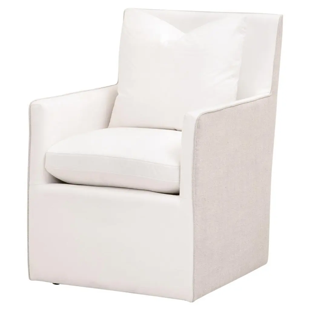 Brittany Coastal White Performance Linen Dining Arm Chair