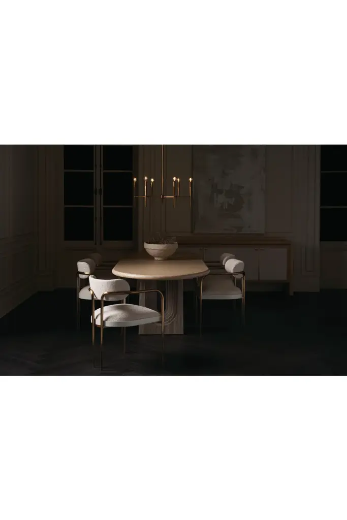 Light in scale with a sinewy silhouette, the Emphasis dining chair draws on parallel lines and elegance of design to make a statement of modernity. From simplicity, comes sophistication: curved metal arms in Lucent Bronze and a seemingly floating, bowed back and wood-framed seat in a subtly contrasting, Almost White finish.