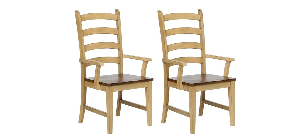 Sunset Trading's Brook Ladder-back Side Chairs provide French country charm to your dining space with a classic tiered back design. You will find many ladder back chairs, your search for the ideal dining chair set will bring you to this Collection, which boasts a side chair and arm chair that match perfectly. Though ladder-back chairs are traditional in nature, these dining chairs are suitable for many decor styles, including Rustic, Mission/Shaker and Transitional. Coordinating Brook Collection Buffet Server, Sideboard and Kitchen Cart make this chair set a stylish and versatile choice.