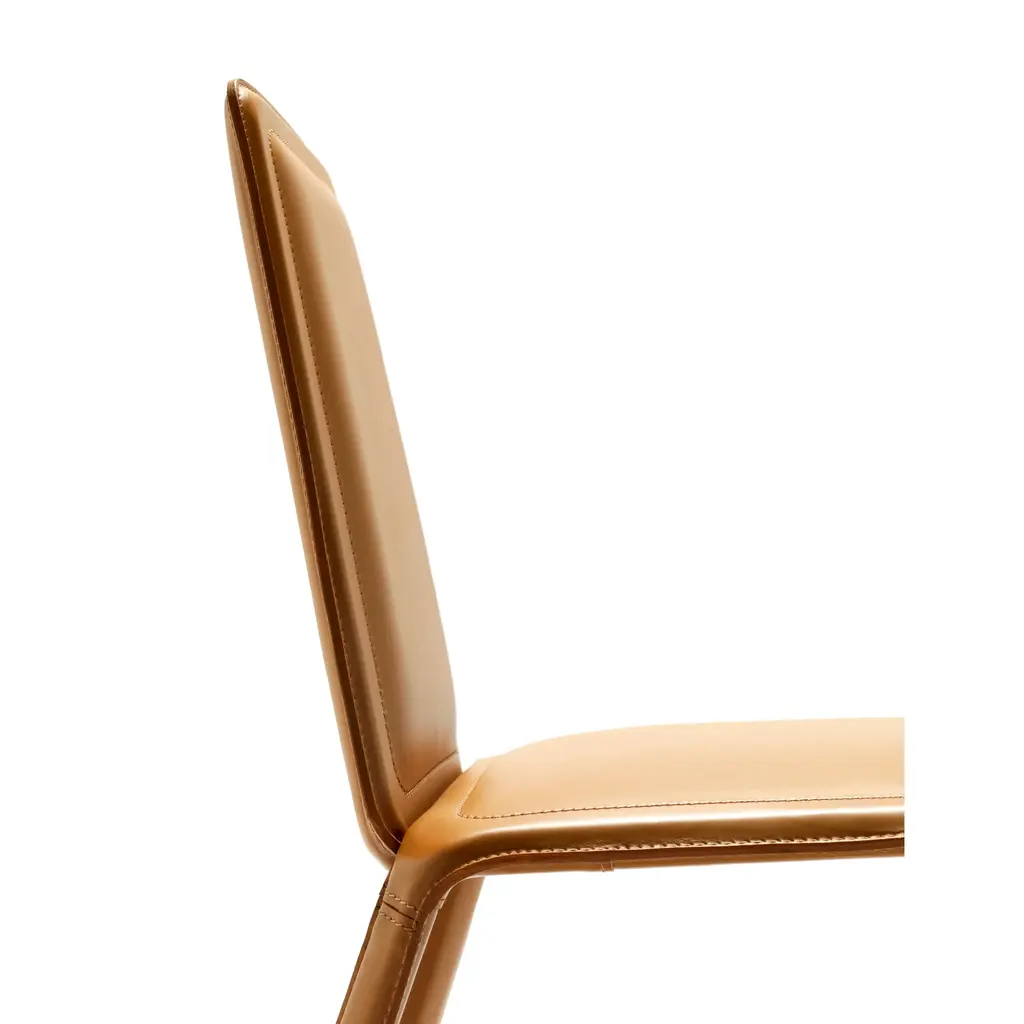 Ande is a dining chair with a slightly padded seat and backrest, fully upholstered in full-grain leather. The legs, made of steel, are also completely covered in full-grain leather. With its soft yet bold lines, the chair offers comfort and elegance. The craftsmanship and careful selection of materials truly enhance its design.