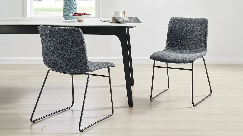 Bruce chair collection provides comfort and style around dining room, bedroom or the entryway. The sled leg frame is powdering coated steel that looks sleek and contemporary. The top stretcher provides extra sturdiness to the construction. Easy Assembly.