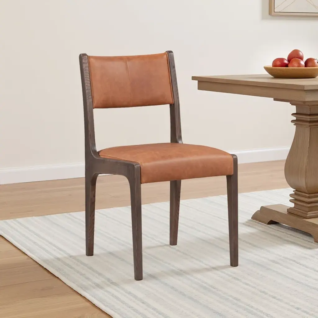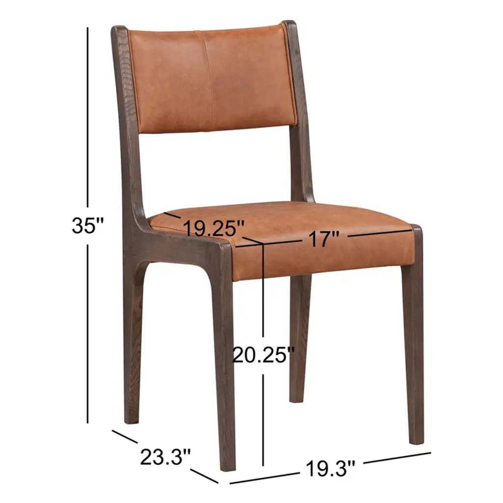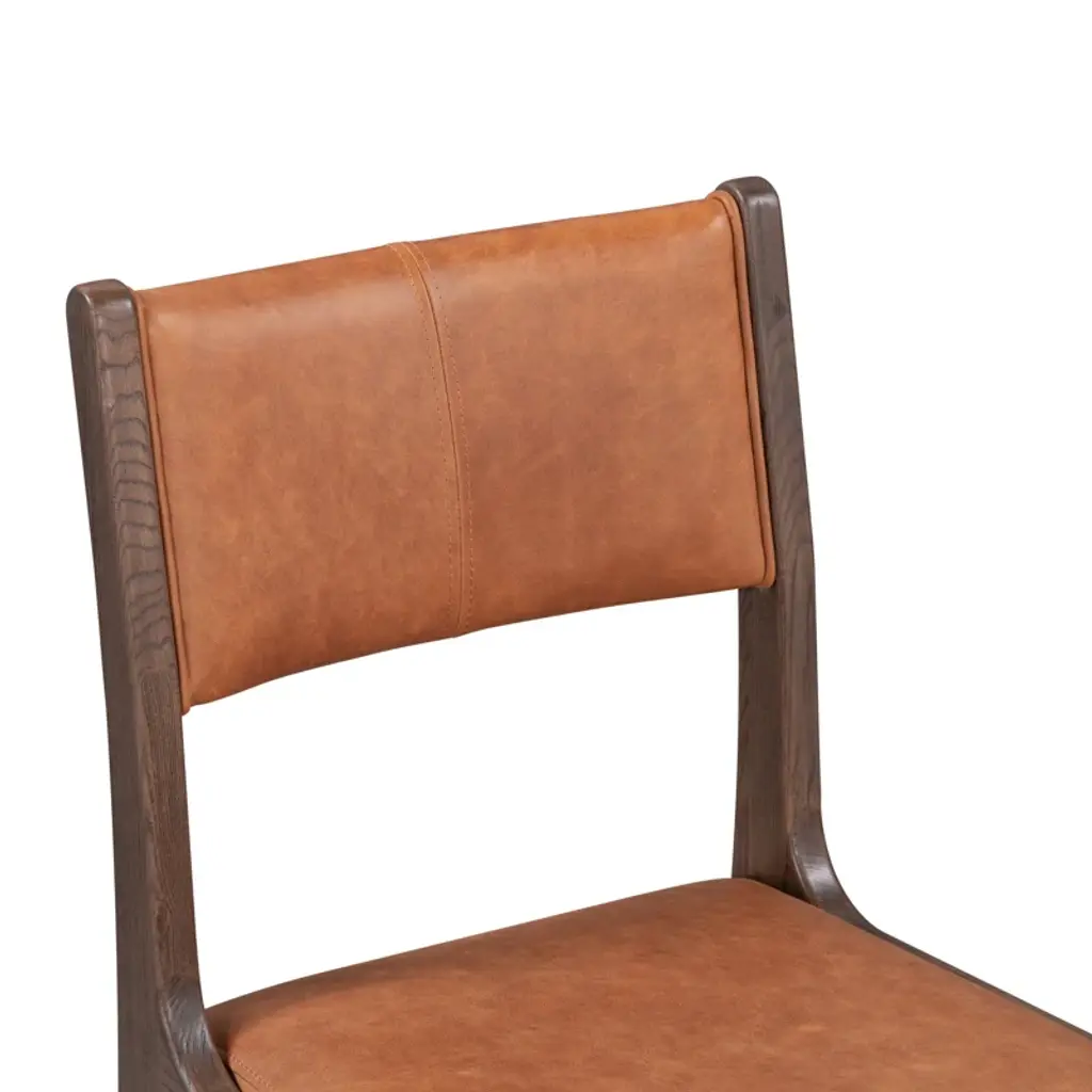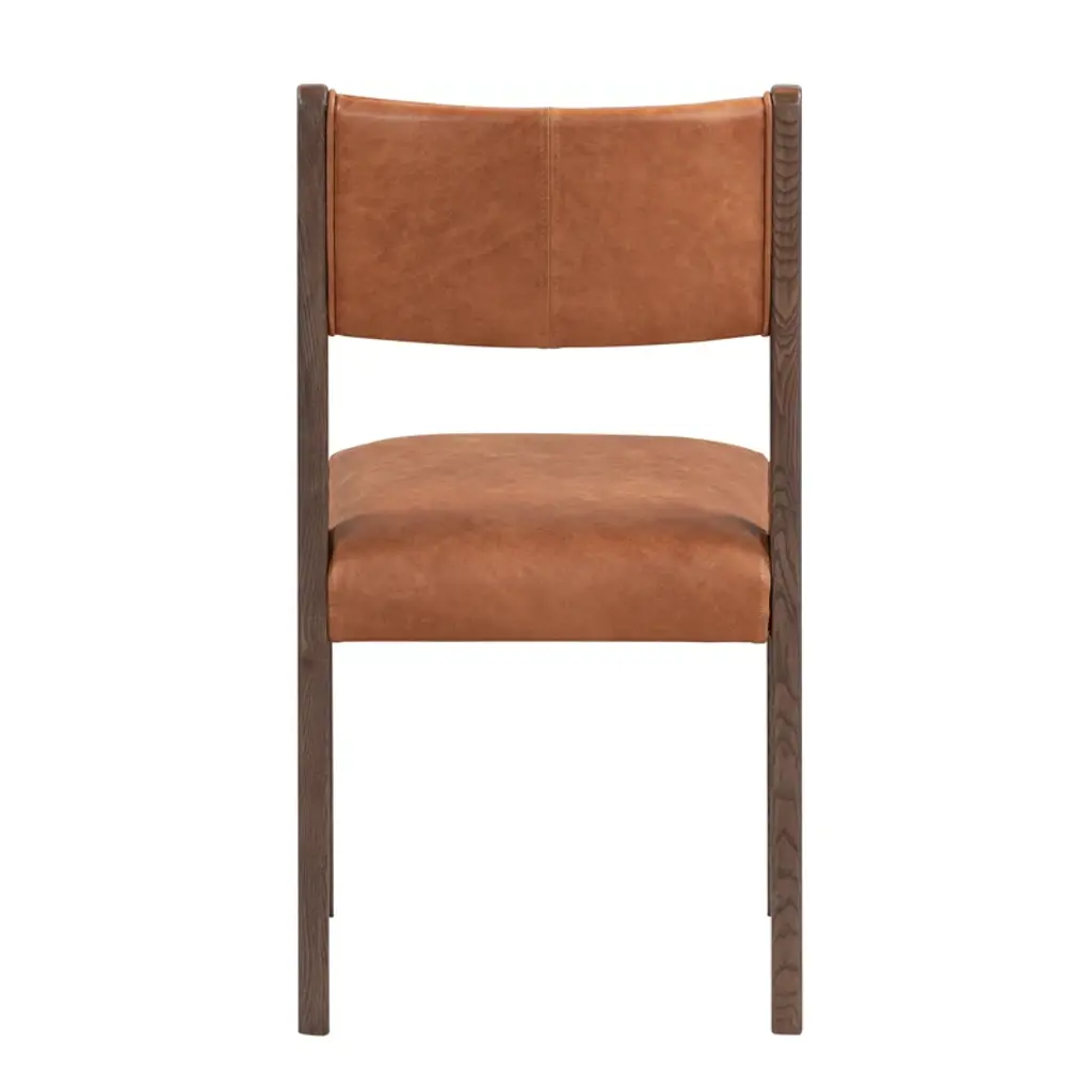Tapered legs and curved corners dress up the classic silhouette of this dining chair, elevating its look with visual interest and making it a chic addition to any design. Ash wood provides a sturdy, strong frame to this piece while top-grain leather upholstery lends a supple, soft feel without sacrificing premium durability.
