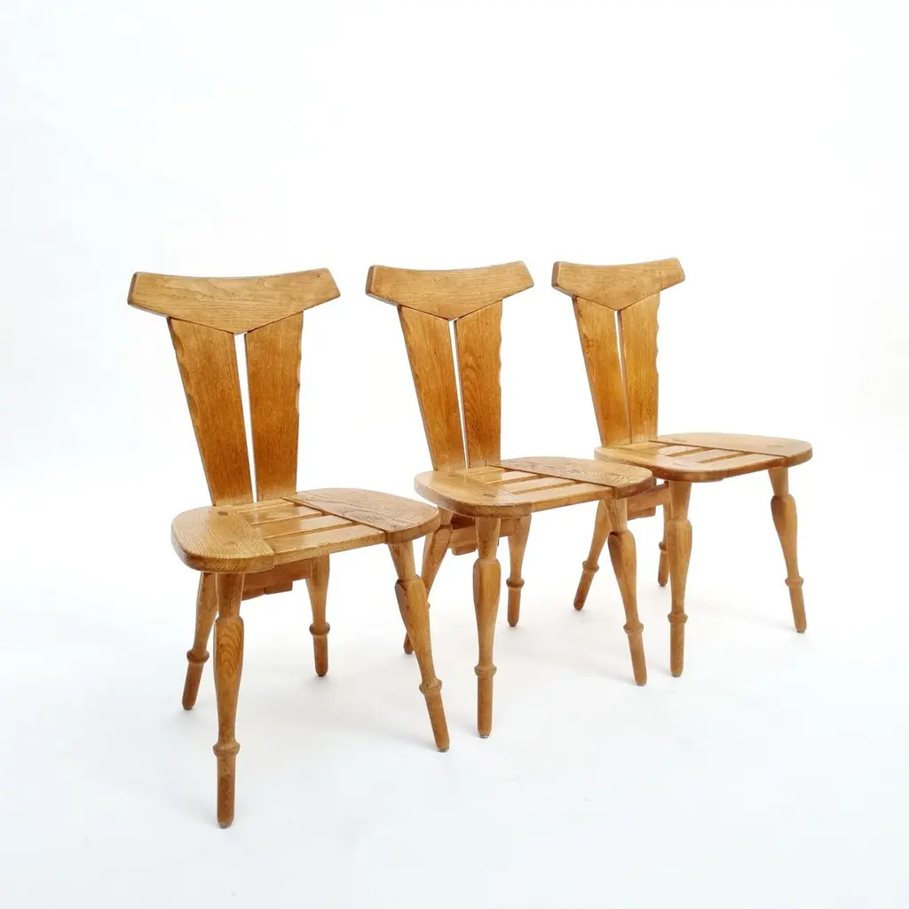 A set of mid-century brutalist dining chairs. Belgium, c1960s.