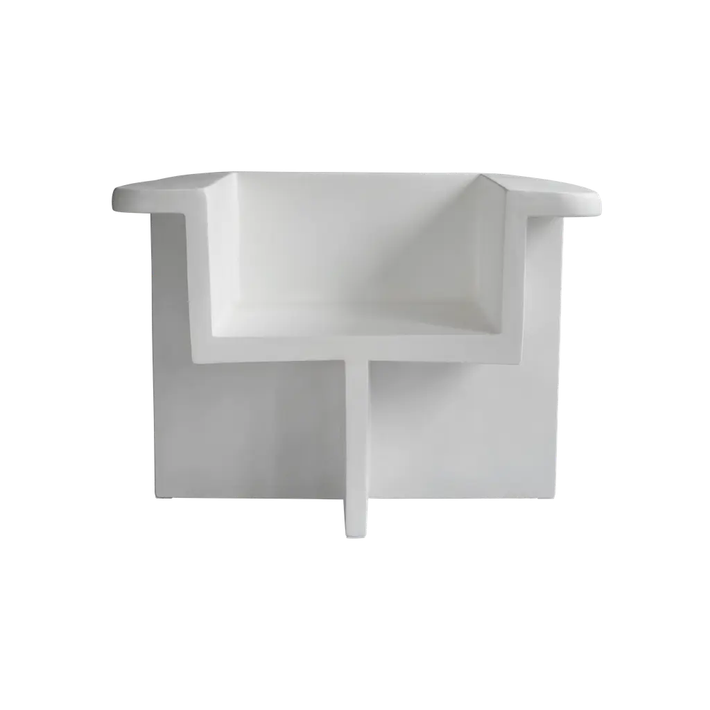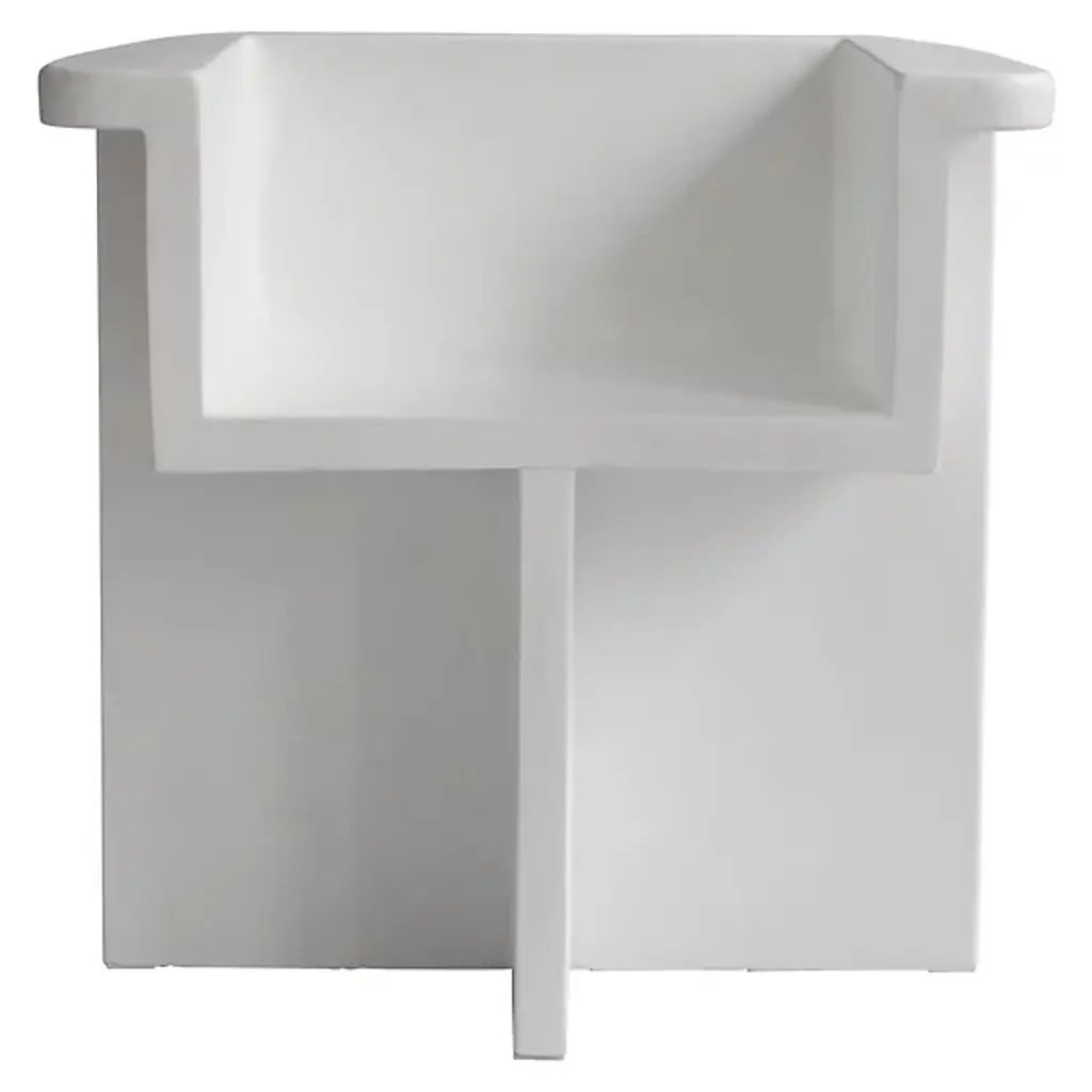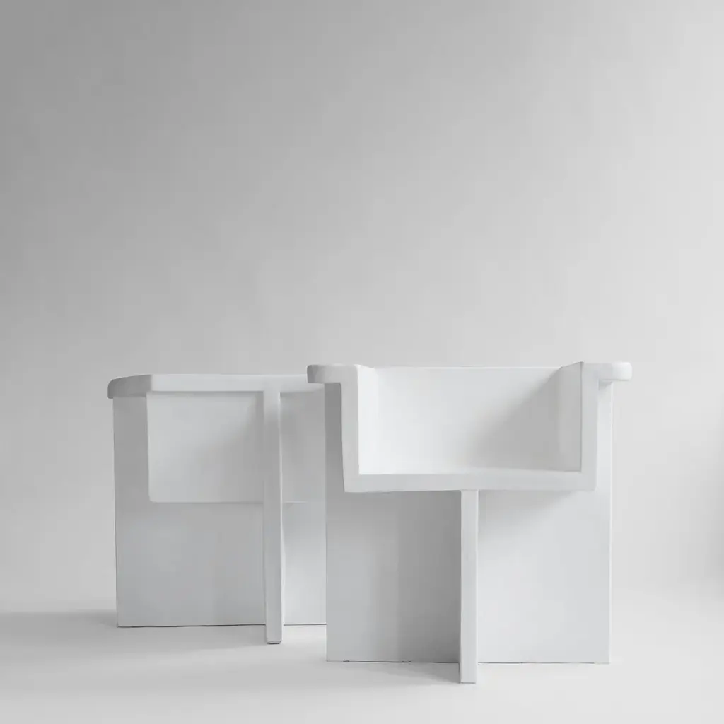 Cushion sold separately. Inspired by the Brutalist architecture movement of the mid-20th century, the Brutus collection comprises a dining chair, a lounge chair, a stool and a coffee table cast in lightweight fiber concrete creating a unique surface texture increasing mobility. Each piece is hand painted to create a textured, unique surface. Emphasizing the fine balance between sharp architectural lines and a somewhat softer curve in the back and armrest, the Brutus collection is sculptural statement pieces with a compelling seating comfort. Designed by Kristian Sofus Hansen & Tommy Hyldahl.
