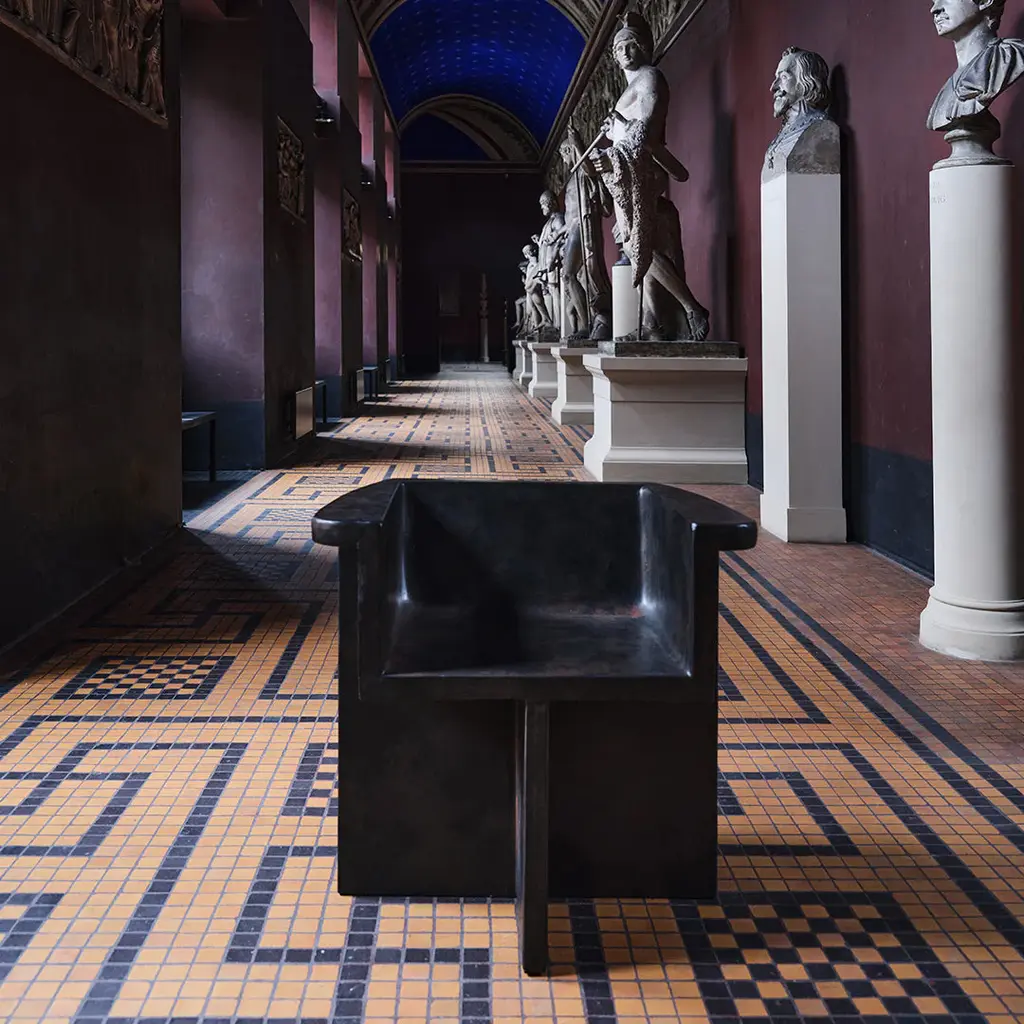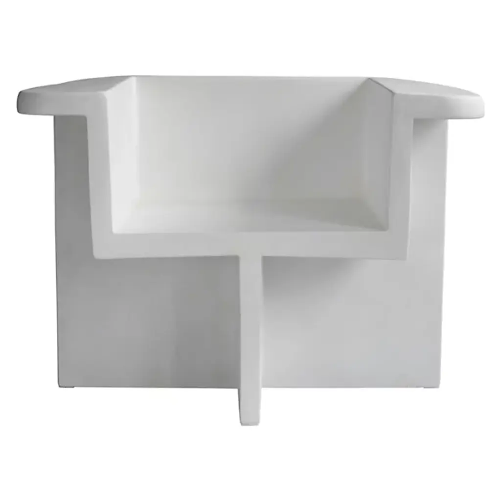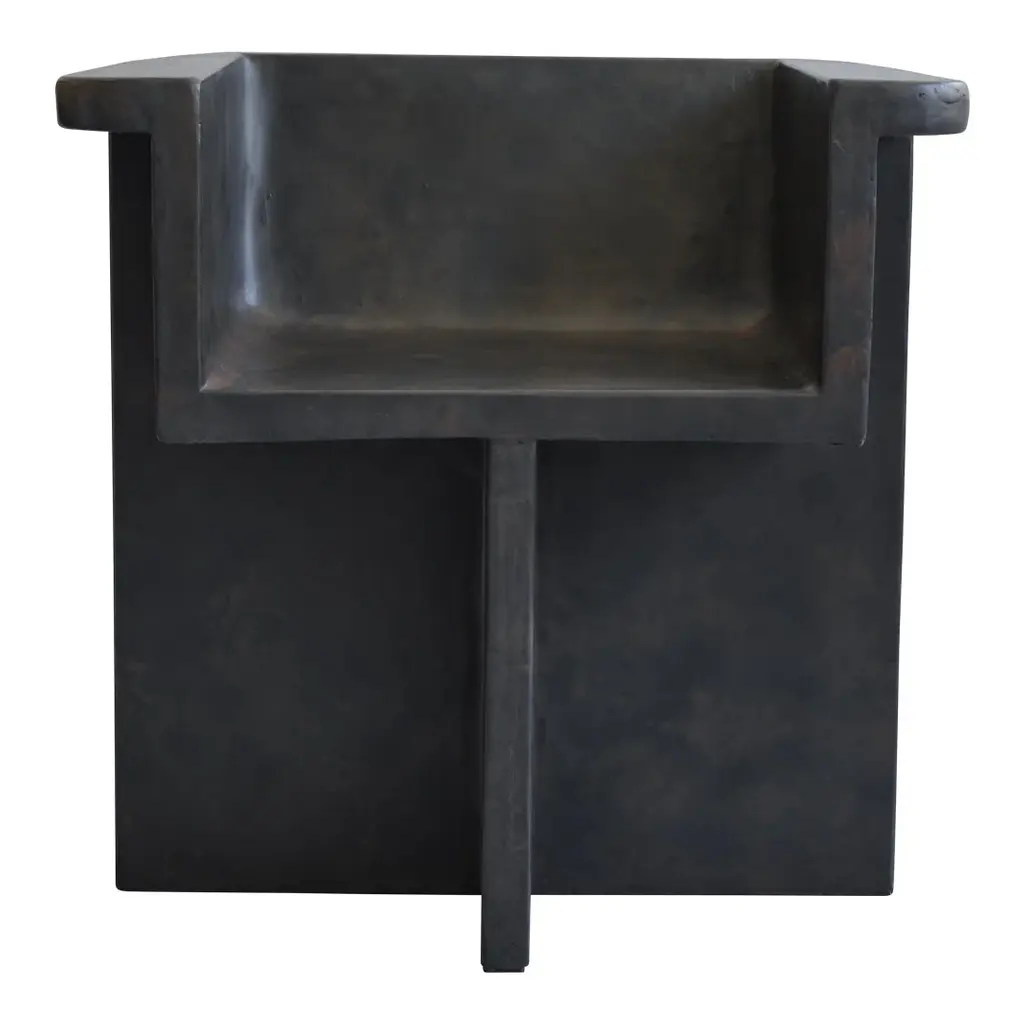 Cushion sold separately. Inspired by the Brutalist architecture movement of the mid-20th century, the Brutus collection comprises a dining chair, a lounge chair, a stool and a coffee table cast in lightweight fiber concrete creating a unique surface texture increasing mobility. Each piece is hand painted to create a textured, unique surface. Emphasizing the fine balance between sharp architectural lines and a somewhat softer curve in the back and armrest, the Brutus collection is sculptural statement pieces with a compelling seating comfort. Designed by Kristian Sofus Hansen & Tommy Hyldahl.