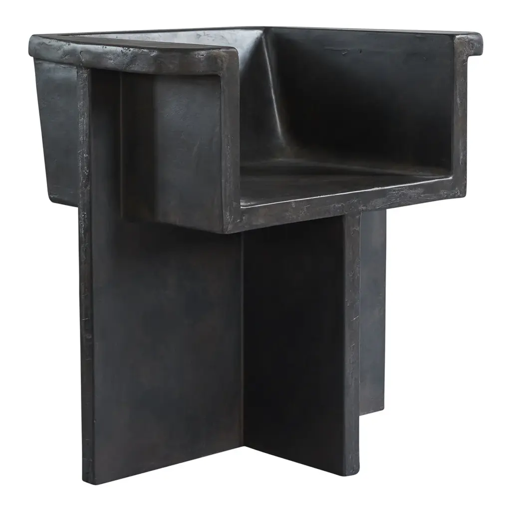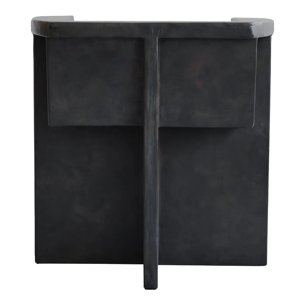 Cushion sold separately. Inspired by the Brutalist architecture movement of the mid-20th century, the Brutus collection comprises a dining chair, a lounge chair, a stool and a coffee table cast in lightweight fiber concrete creating a unique surface texture increasing mobility. Each piece is hand painted to create a textured, unique surface. Emphasizing the fine balance between sharp architectural lines and a somewhat softer curve in the back and armrest, the Brutus collection is sculptural statement pieces with a compelling seating comfort. Designed by Kristian Sofus Hansen & Tommy Hyldahl.