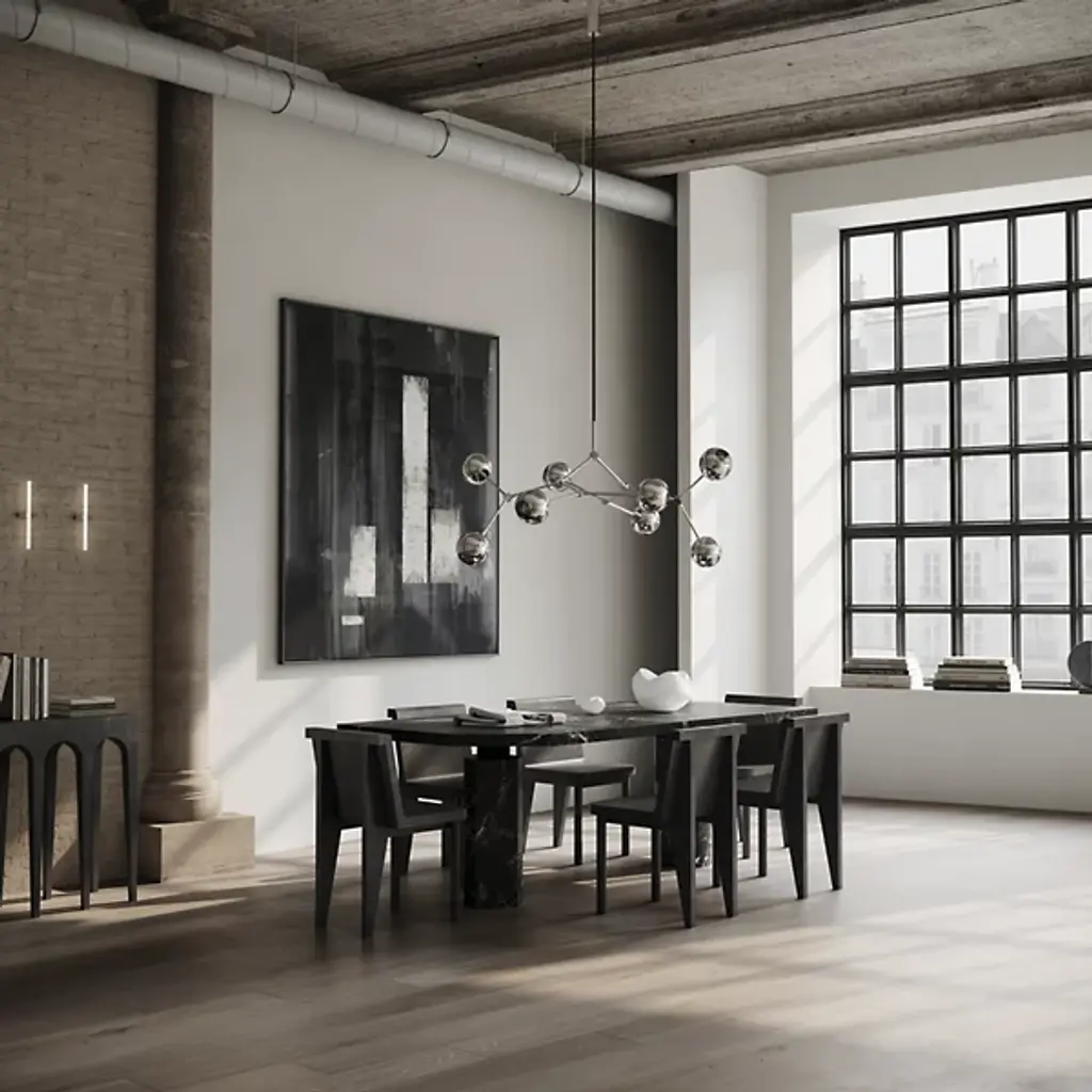 A strong, open design drawing inspiration from mid-20th-century Brutalist architecture, the Brutus Slim Dining Chair from 101 Copenhagen is a memorable fusion of form and function. Designed by Kristian Sofus Hansen and Tommy Hyldahl, this chair is made from lightweight fiber concrete, offering a strong seating option that remains light enough to move around. The sharp lines and slender legs are softened by smooth curves, creating a sculptural design with a hand-painted finish that gives each chair a distinct texture, adding character to any dining space.