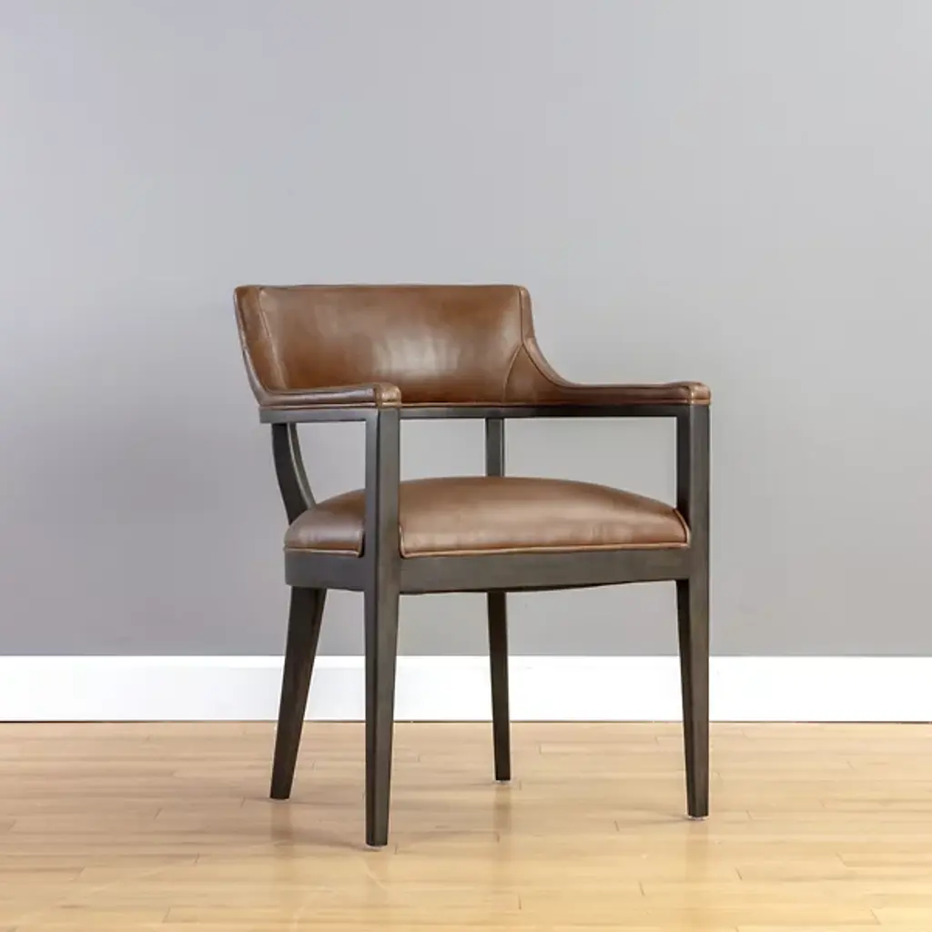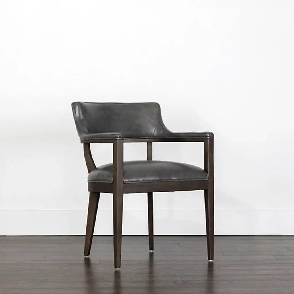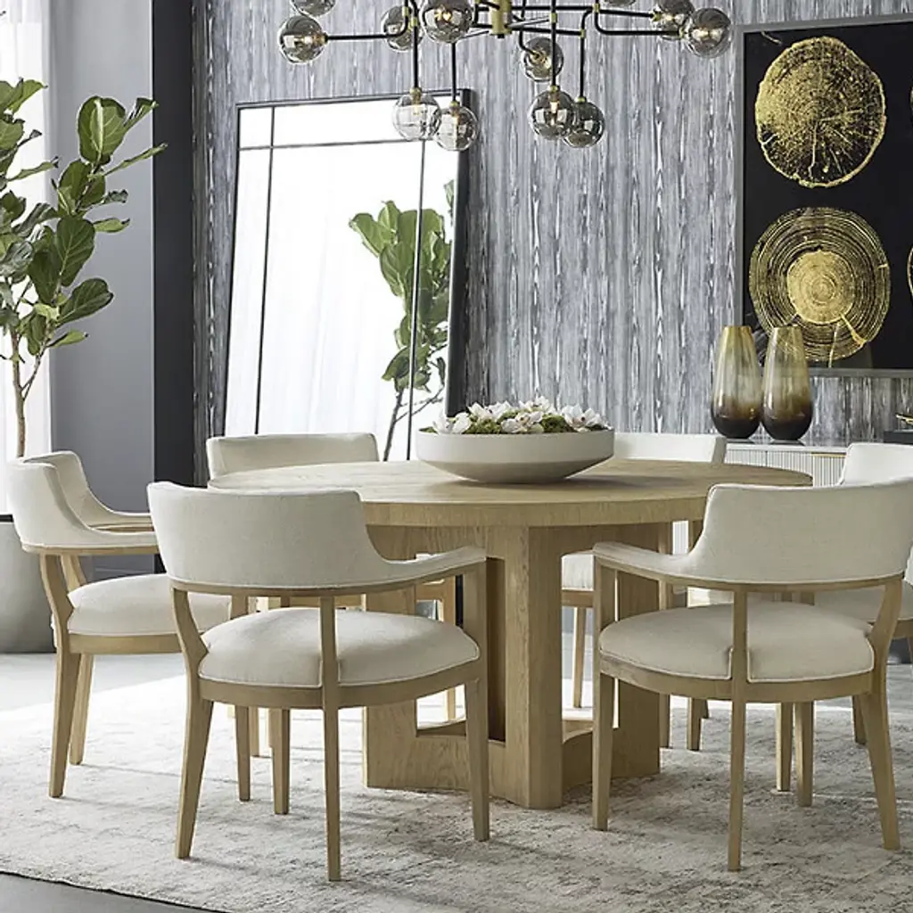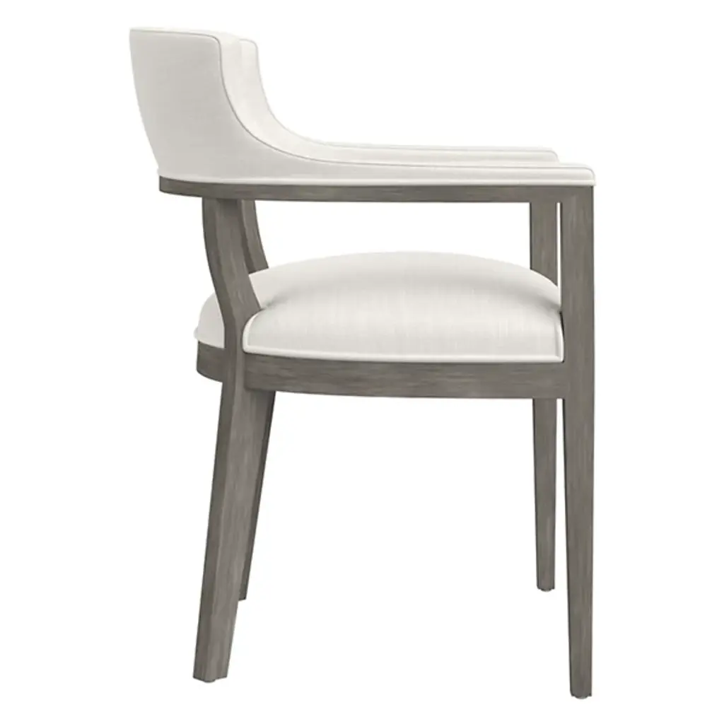 The Brylea Dining Armchair from Sunpan features an elegant open-back design, perfectly blending style and comfort. Upholstered in linoso ivory performance fabric, it offers moisture repellency, durability, and easy maintenance. The exposed ash grey solid oak wood frame adds a sophisticated touch, showcasing the natural beauty of the wood. Due to the organic nature of wood, each piece will display unique variations in texture, color, and grain, along with charming knots and burls that enhance its character and appeal.