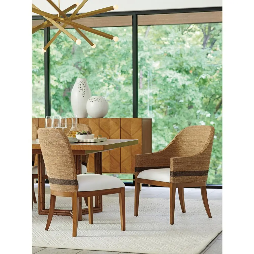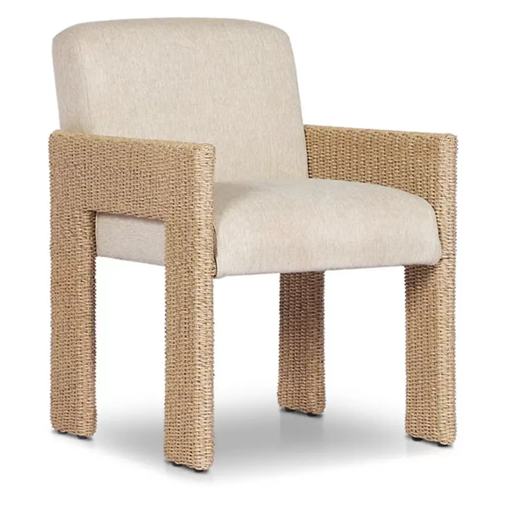 Bryson Coastal White Performance Brown Woven Rope Dining Arm Chair