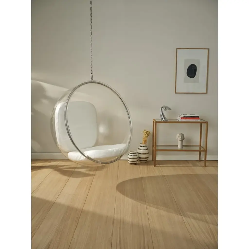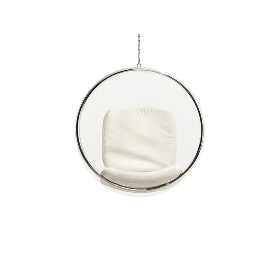 Eero Aarnio's Bubble Chair from 1968 is based on the idea of Aarnio's iconic Ball Chair. Like the Ball Chair, the Bubble Chair has a simple shape – a ball – but is made of different materials and does not have a pedestal but hangs from the ceiling! Eero Aarnio commented on the design: “After I had made the Ball Chair I wanted to have the light inside it and so I had the idea of a transparent ball where light comes from all directions. The only suitable material is acrylic which is heated and blown into shape like a soap bubble”. Thanks to its special acoustics and soft leather seat, it will be like feeling pleasantly isolated even with many people around. Like the Ball Chair, also the Bubble Chair has become a well-known and desired piece of furniture all over the world.