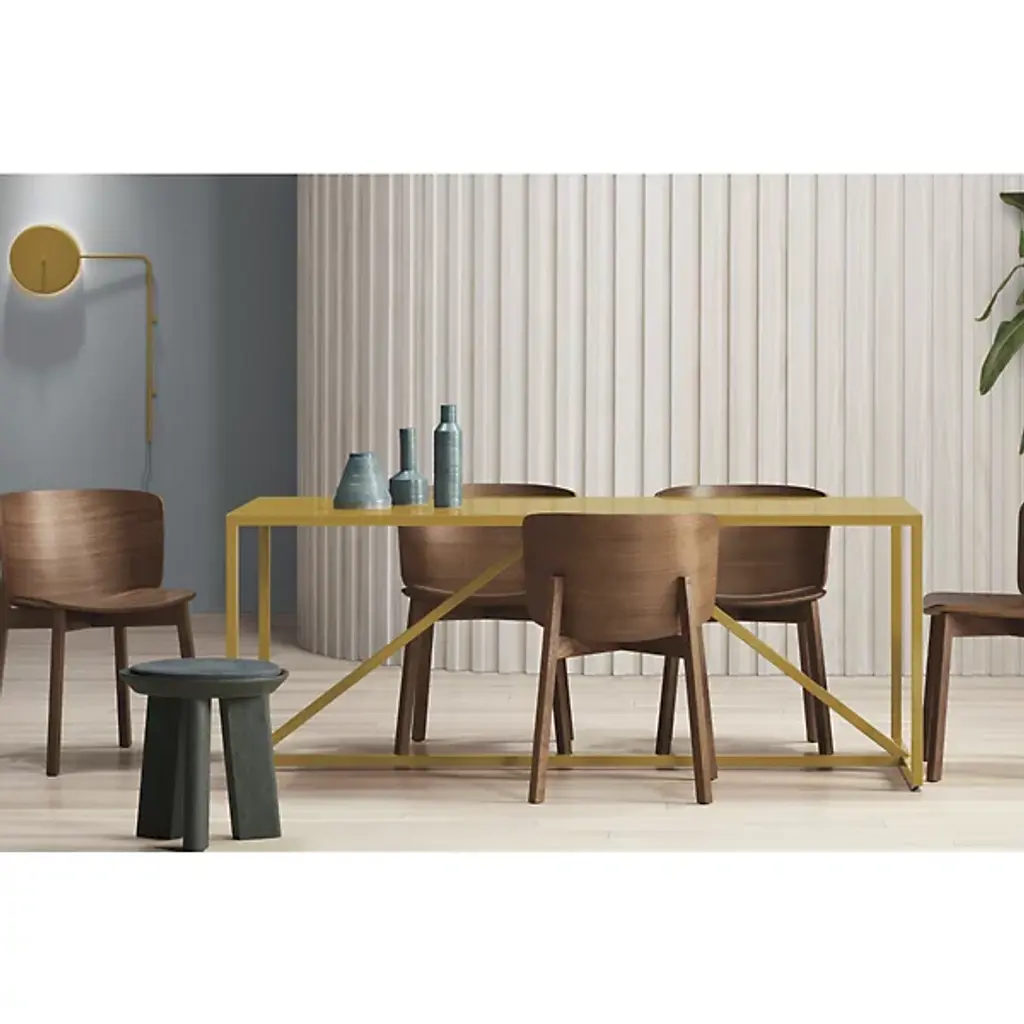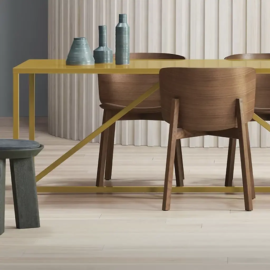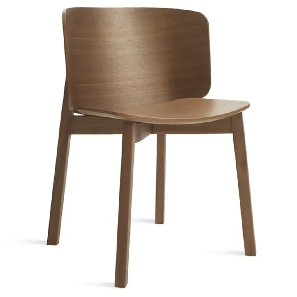 In the world of dining chairs, the Buddy Dining Chair from Blu Dot stands as a testament to the enduring appeal of wood as a medium. Its molded plywood back embraces the sitter with a gentle hug, while a gracefully curved wood seat offers comfort and style. Supported by solid wood legs, this chair exudes a sturdy elegance, with subtle dowel details adding a touch of sophistication. BIFMA tested for durability and safety assurance; Buddy epitomizes contemporary style with its soothing blend of natural materials and modern design aesthetics.