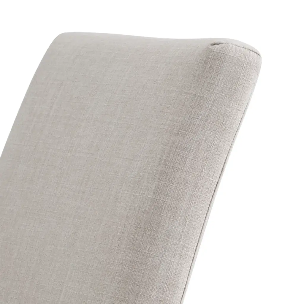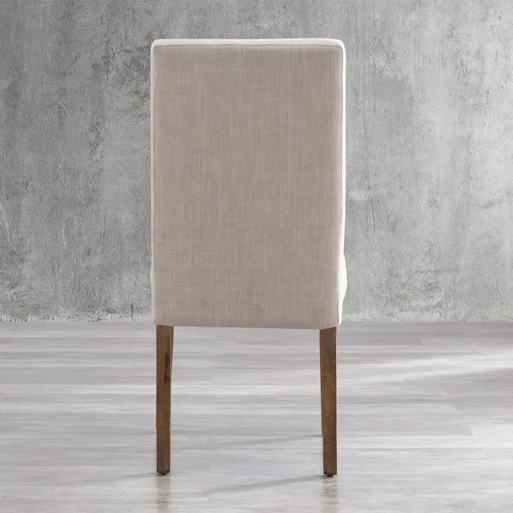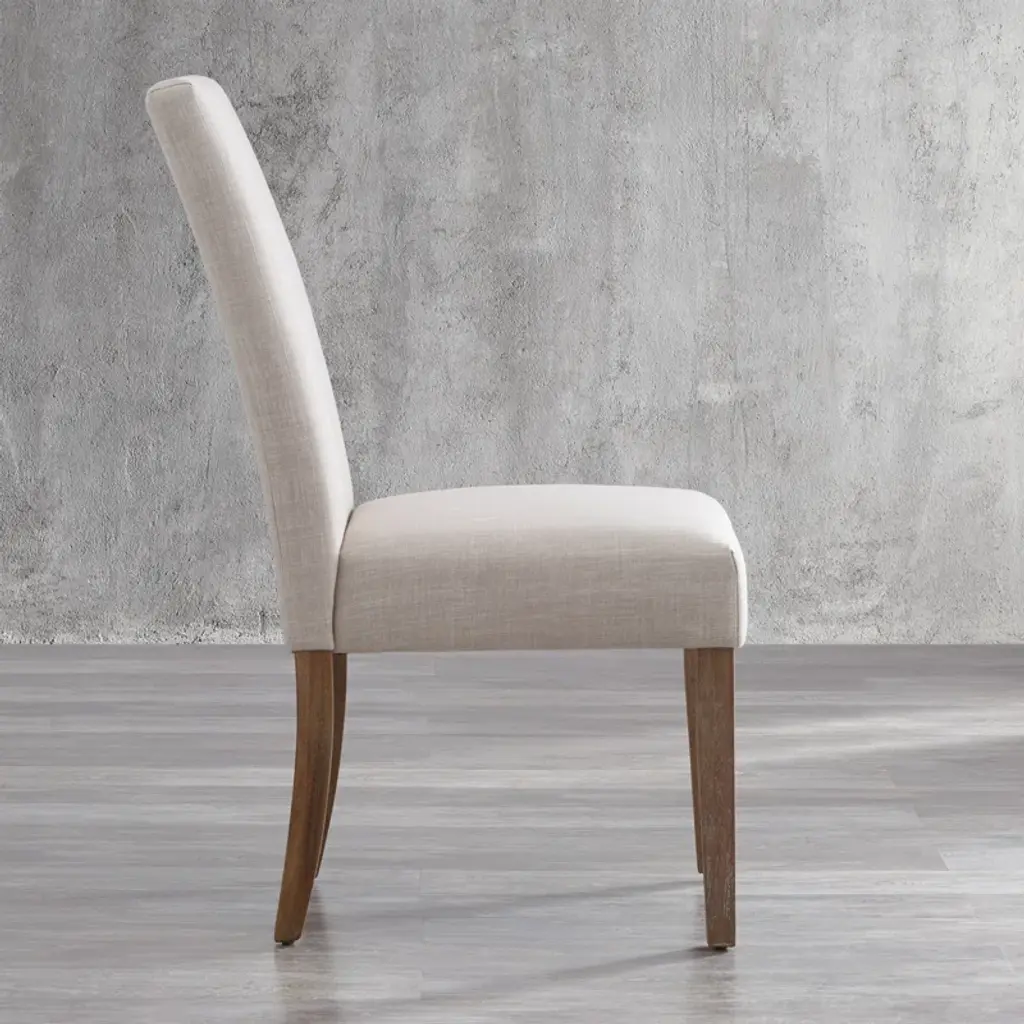 Elevate your dining experience with this set of two parsons chairs, crafted from solid rubberwood for a touch of natural elegance. Upholstered in linen, these chairs offer a cozy seat with foam filling, while the solid back design adds a timeless appeal. The wood grain color variation and scoring give it a rustic flair, making it a great addition to any dining space. Plus, plastic glides on the feet protect your floors from scratches. Just remember to wipe them clean with a damp cloth to keep them looking fresh.