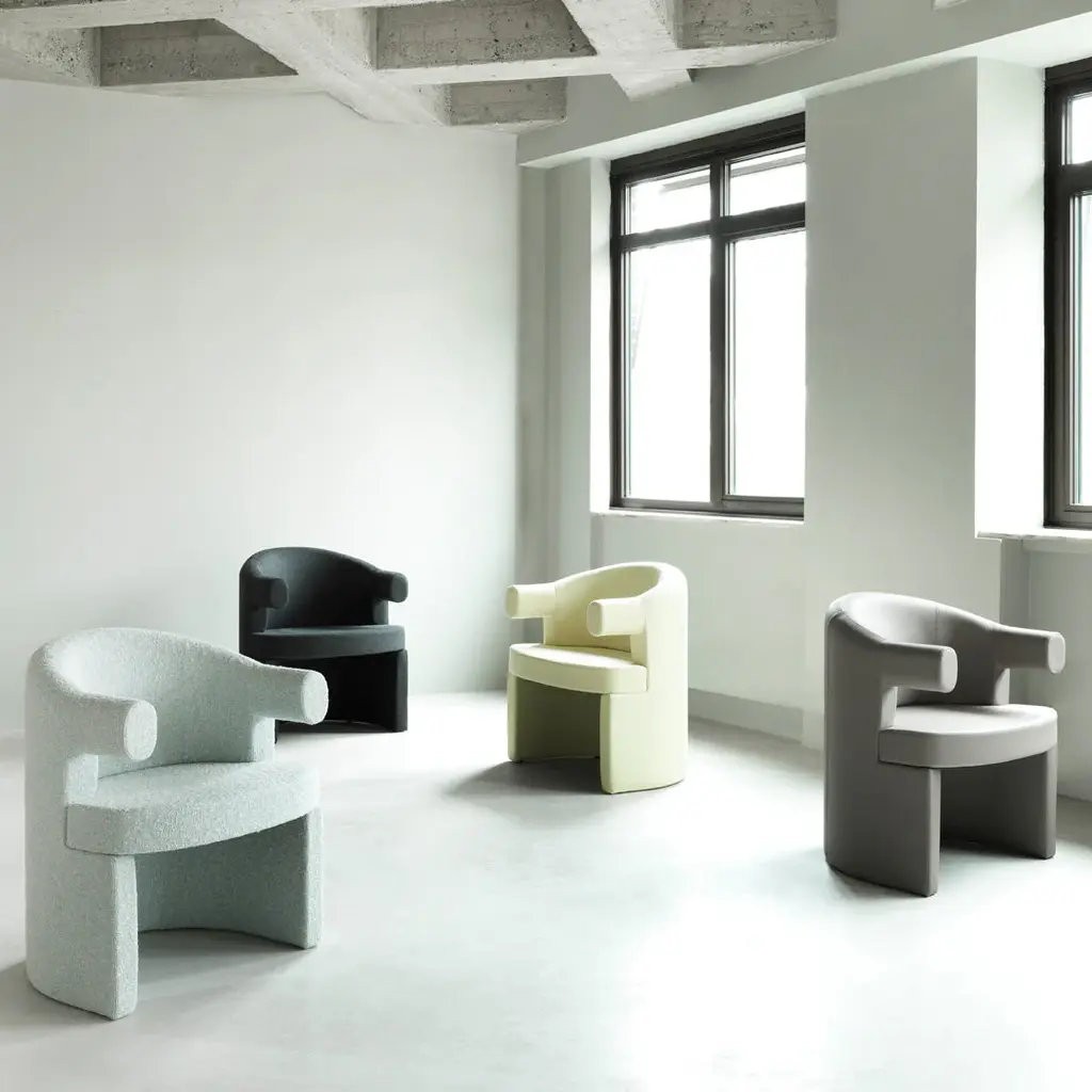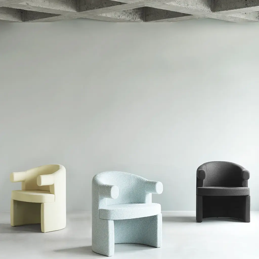 The Burra Chair is a visually stunning dining chair with a rounded seat and huggable backrest. The fully upholstered chair is made of form-stressed veneer fitted with cut PU foam for extra softness. The backrest has a slight angle designed to offer optimal support and seating comfort.