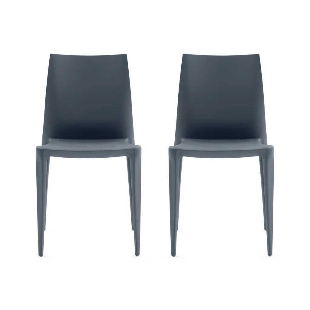 Simplified seating. Our set of two outdoor chairs showcases a sleek, classic silhouette with contoured seats for added comfort. Made from UV-resistant plastic, these stackable chairs are perfect for those who appreciate a clean, uncluttered outdoor relaxation space. Ideal for your patio or backyard gatherings, they're easy to clean with soap and water. Invite your friends over and enjoy the fresh air together in style.