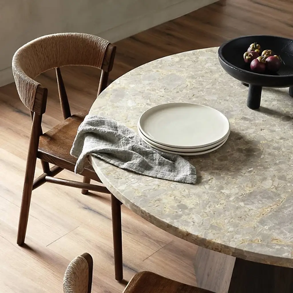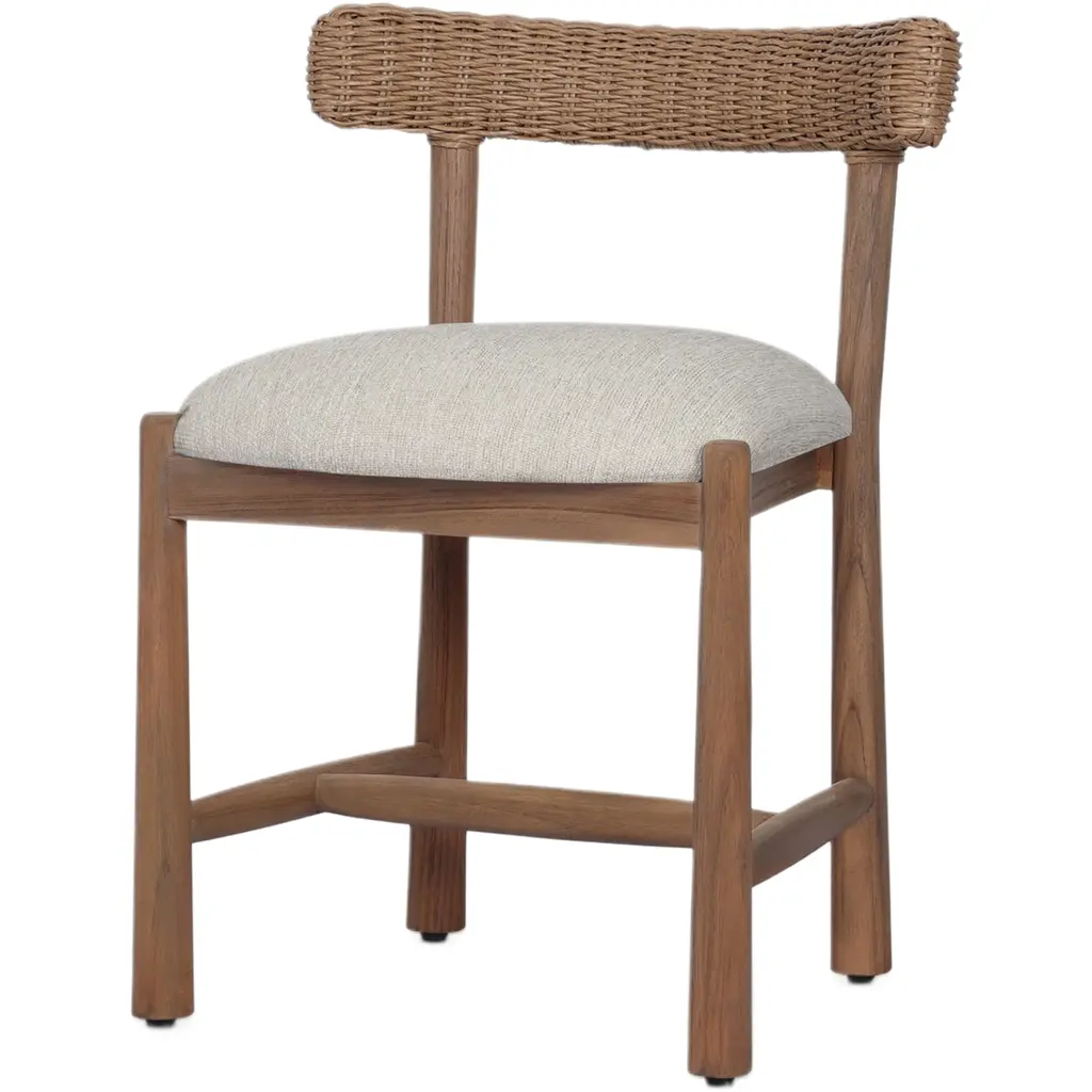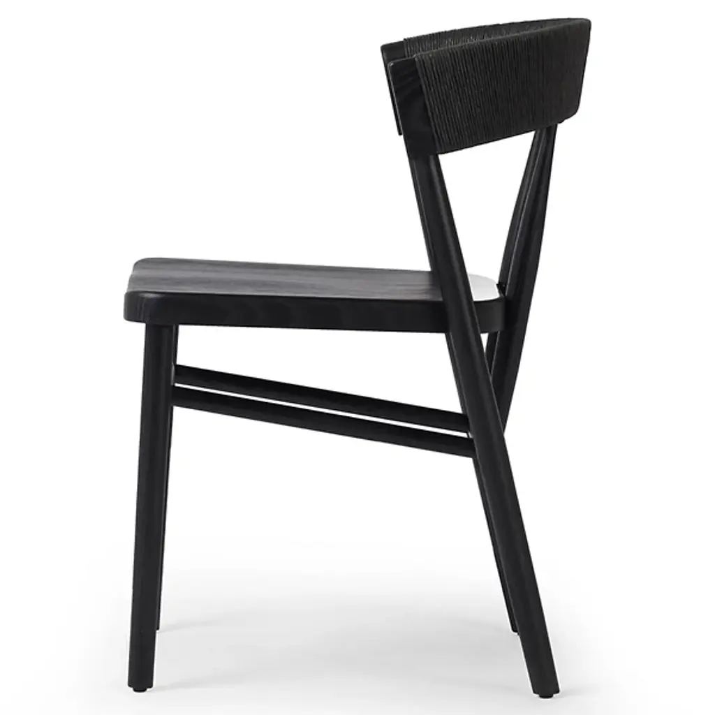 Elevate your dining experience with the Buxton Dining Chair from Four Hands, featuring solid oak construction and tapered legs that offer a fresh twist on the classic whistler chair design. This chair is meticulously finished with a paper rush wrapped detail on the back, adding a touch of rustic charm to its transitional aesthetic. Crafted from high-quality rush and solid oak, it combines modern sophistication with rustic elements, making it a perfect addition to any dining room seeking a blend of timeless elegance and contemporary flair.