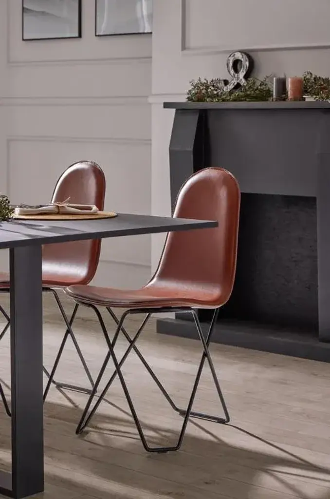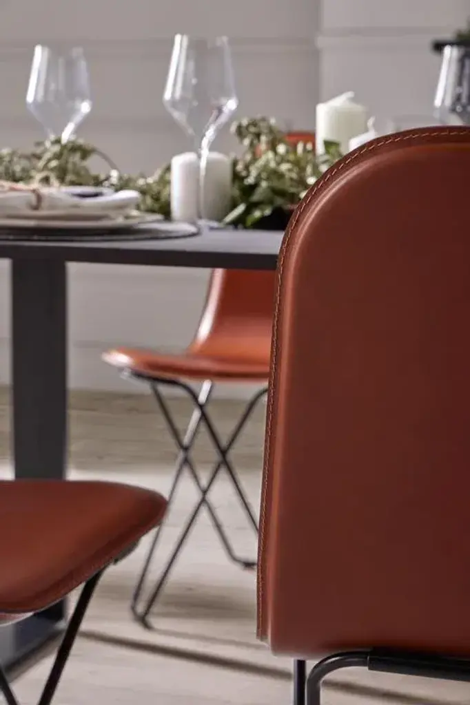 Cactus Leather Dining Chair by Cuero Design Dimensions: D 67 x W 50 x H 90 cm. Materials: Leather and metal. Weight: 6,8 kg. Finish: Crude Nature and black frame.