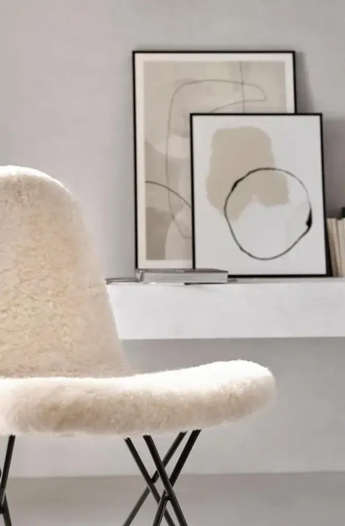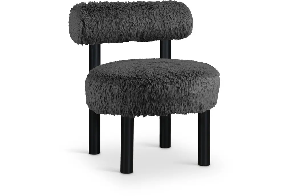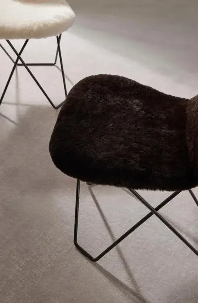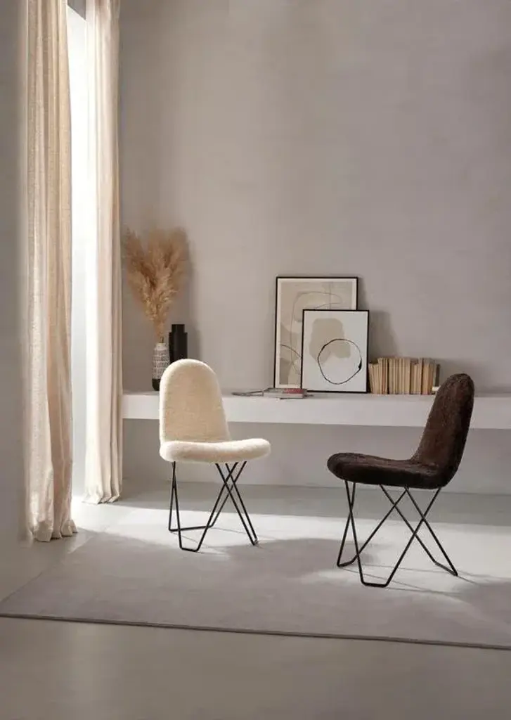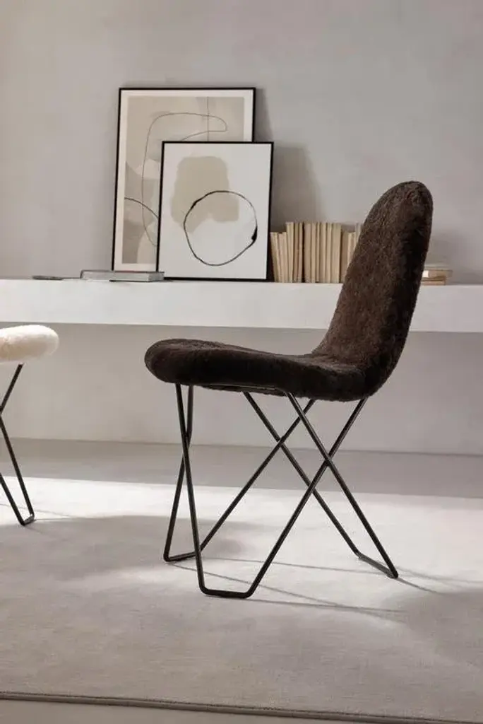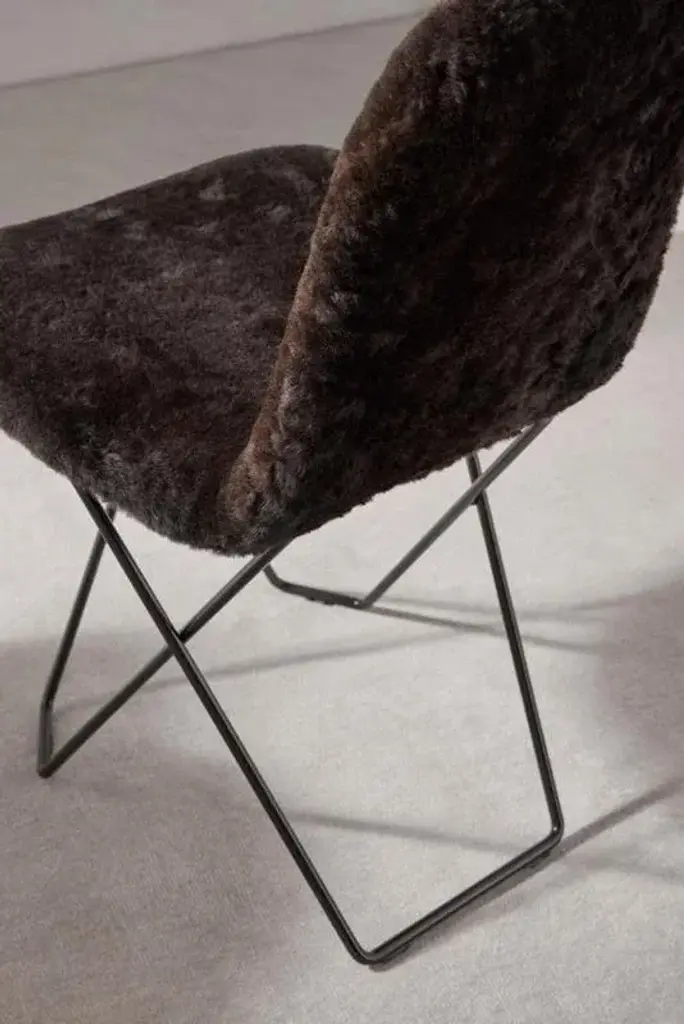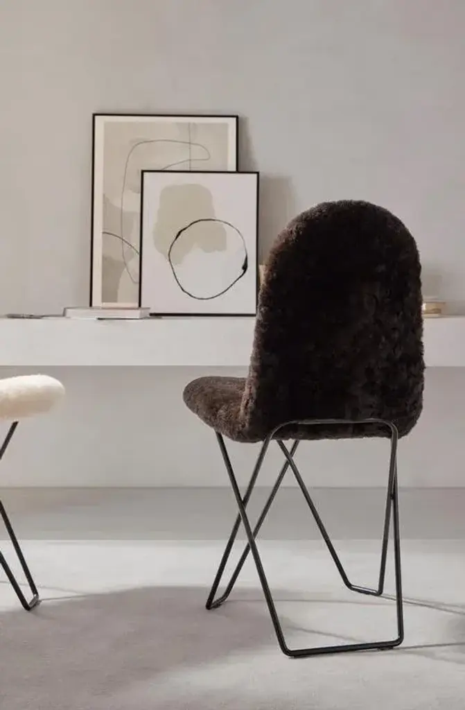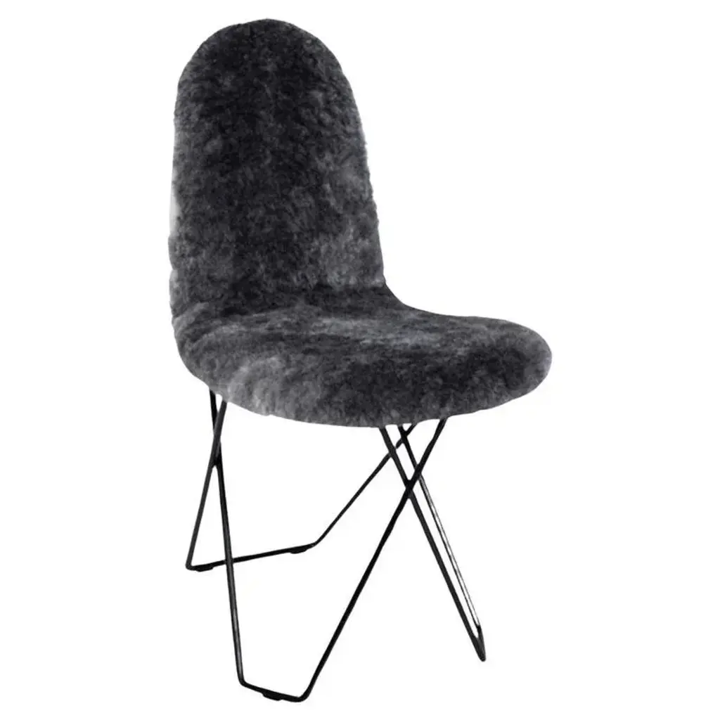 Cactus Sheepskin Dining Chair by Cuero Design Dimensions: D 67 x W 50 x H 90 cm. Materials: Sheepskin and metal. Finish: Shorn Natural Grey sheepskin and black frame.
