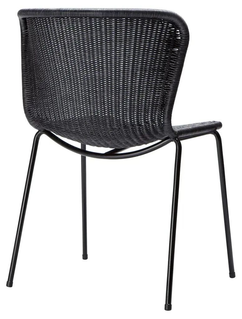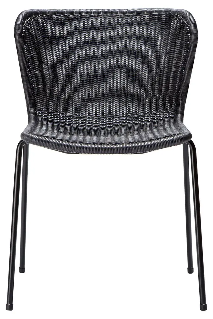 Fluid curves add to the gracefulness of this chair, which is made with woven rattan that includes a protective outer layer for added durability. As many as four chairs can be stacked for easy storage.