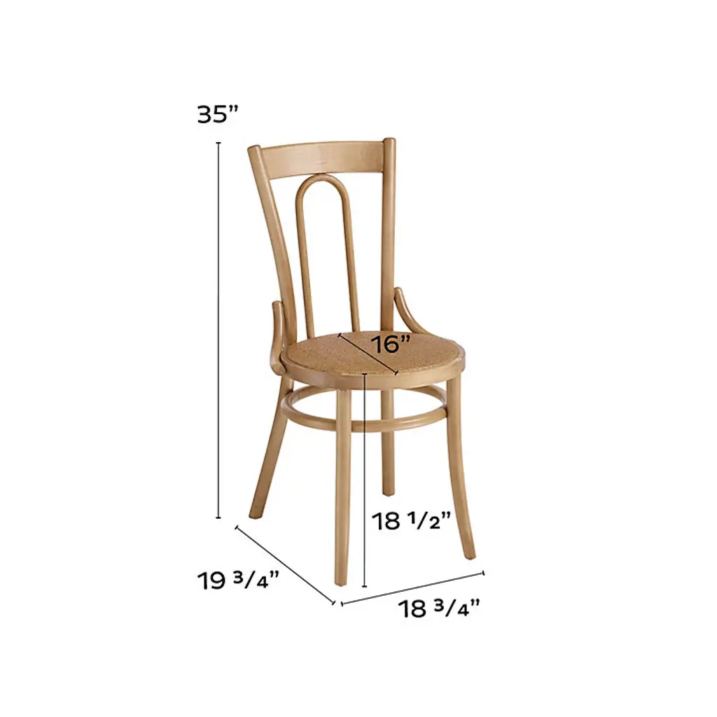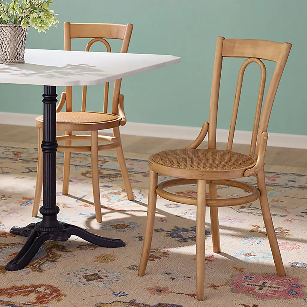 Our Cadence Dining Chair is a fresh nod to the iconic silhouette by legendary 19th century German furniture maker, Michael Thonet. The frame is masterfully crafted of solid birch wood and steam-bent to create the expressive, organic curves. Padded, hand woven rattan seat provides everyday comfort and textural charm. Tapered legs flair at the foot, echoing the back's subtle arch. Cadence Dining Chair features: