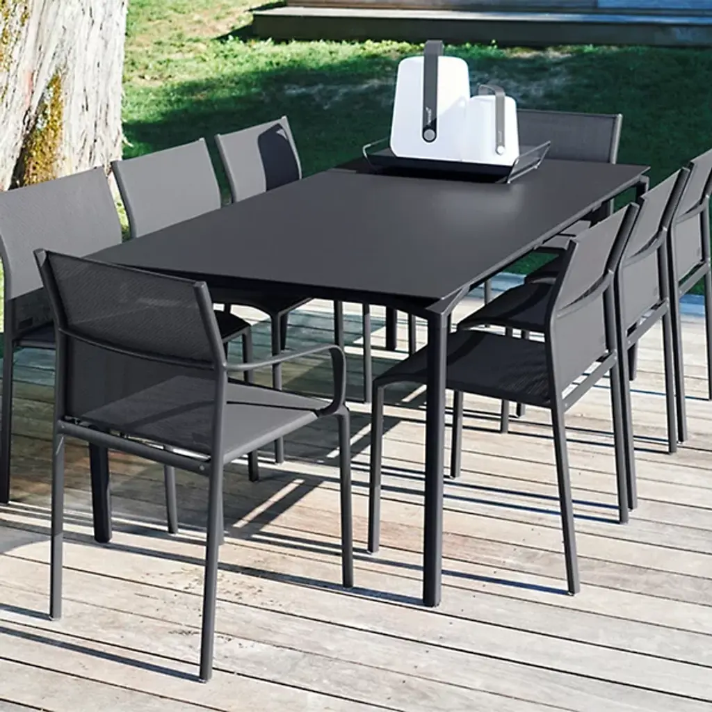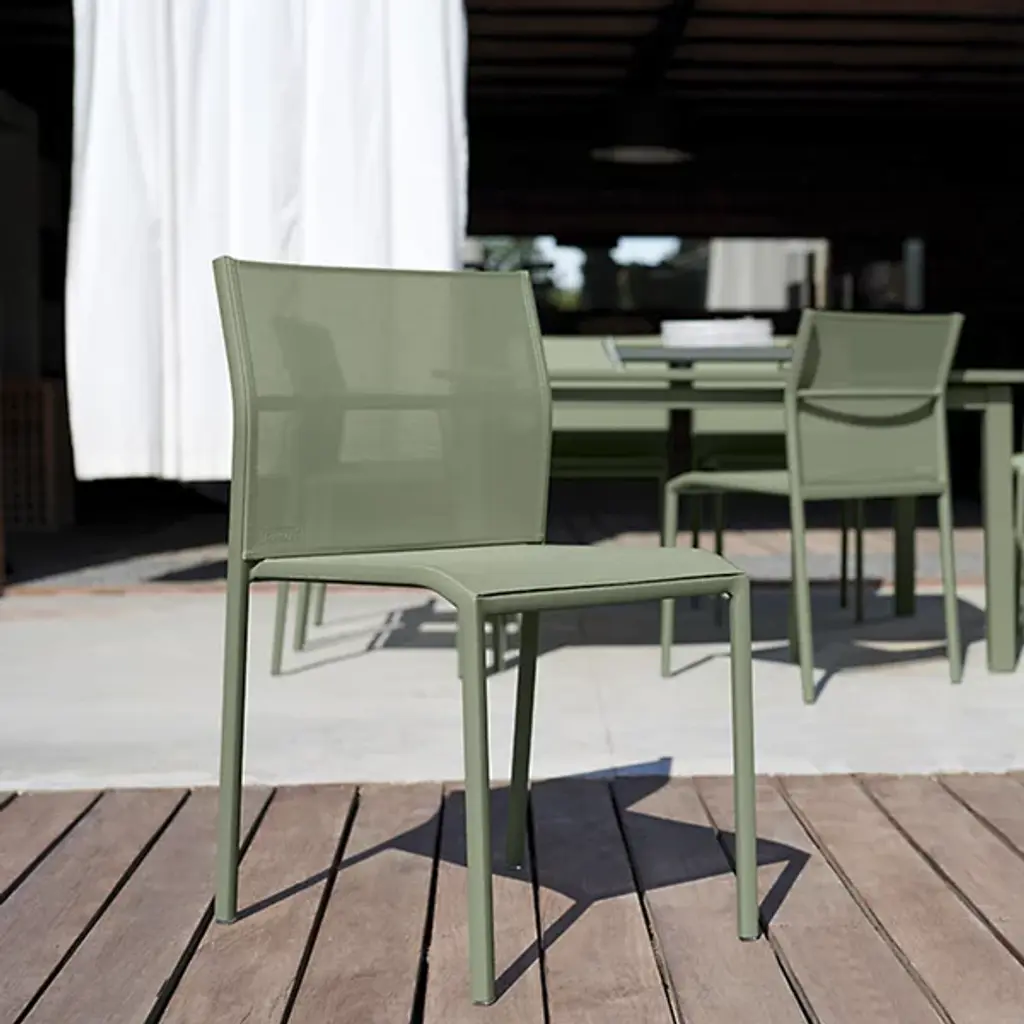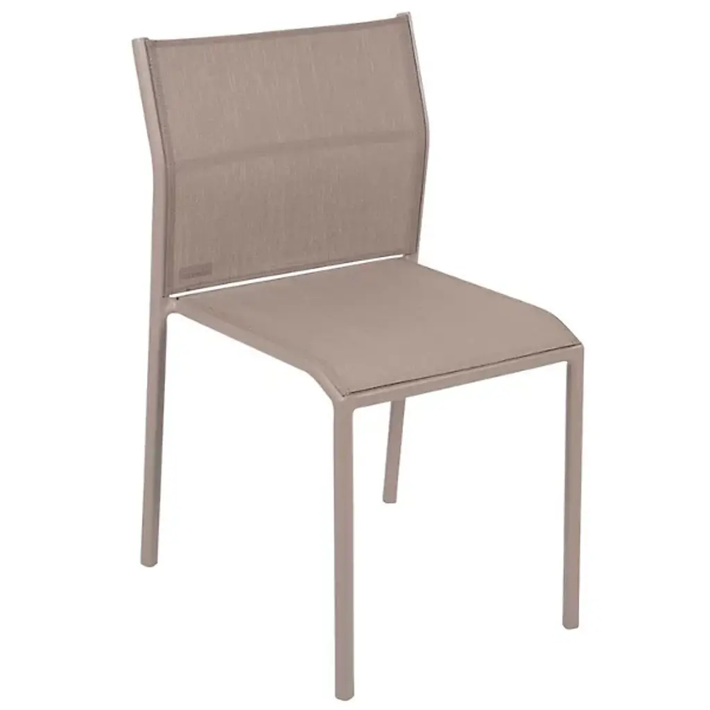 Sleek design and eternal comfort for a modern outdoor dining area. The Cadiz Chair - Set of 2 by Fermob has a lightweight look and feel backed up by strong materials and careful construction. Each chair features panels of tough and breathable Outdoor Technical Fabric for the seat and back, stretched across a slender Aluminum frame. Slight angles at the middle of the back and the front of the seat both ensure maximum ergonomic comfort and support, and provide visual continuity throughout the design. When not in use, these outdoor dining chairs can be stacked up to 10 high for compact, out-of-the-way storage.