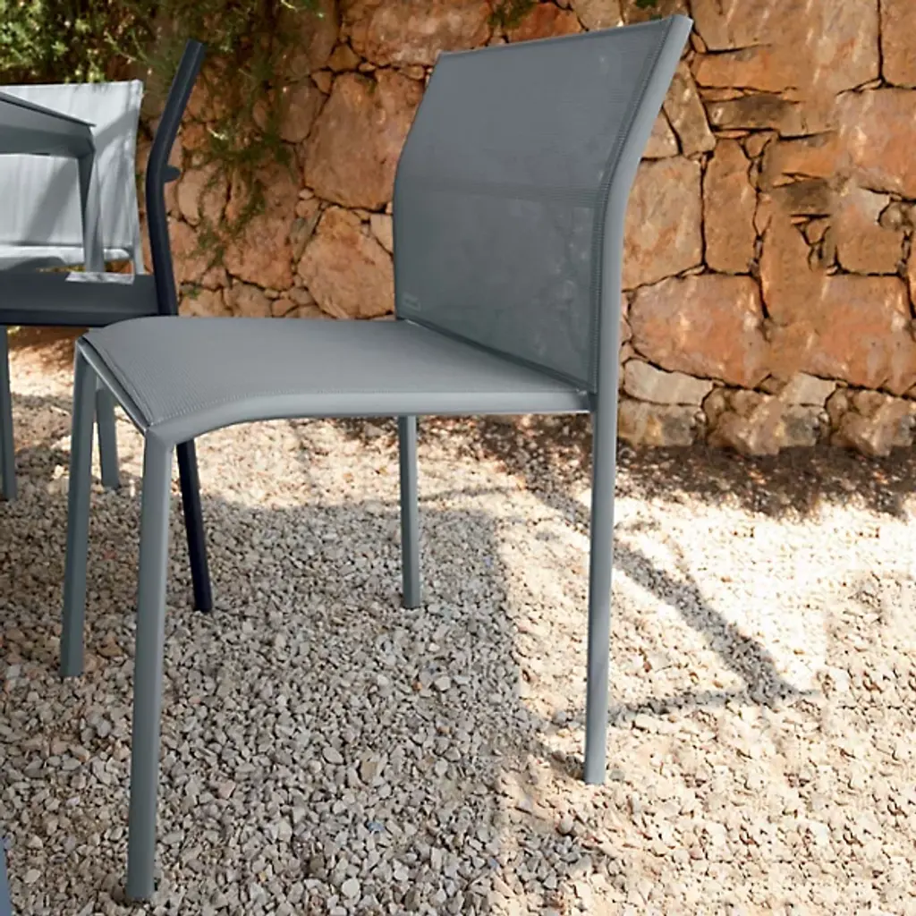 Refined design paired with airy comfort for the sophisticated indoor or outdoor dining area. The Cadiz Side Chair - Set of 2 by Fermob was designed by Antoine Lesur with a lightweight aluminum frame that has slight angles at the head and seat to provide ergonomic support and visual interest. The Outdoor Technical Fabric (OTF) used for the seat and back is similarly lightweight, but exceptionally strong; it holds its shape even with heavy use, and it’s resistant to stains, mold and tears.