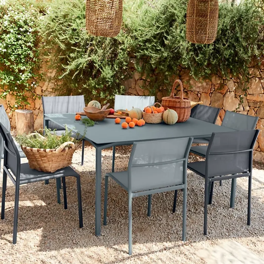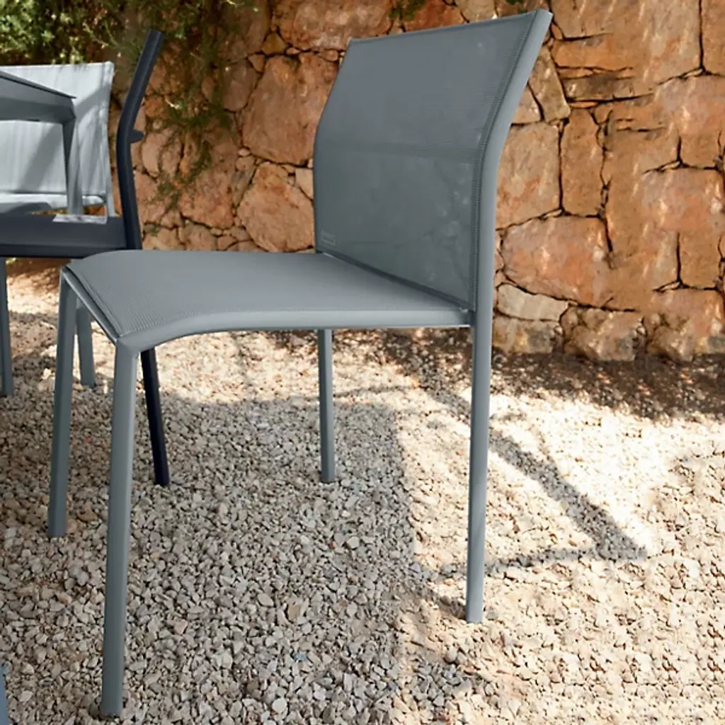 A streamlined seating design inspired by the laidback sophistication of the Spanish coast. Designed by Antoine Lesur, the Cadiz Side Chair - Set of 4 by Fermob is at once airy and lightweight, strong and refined. It has a sturdy aluminum frame, which is angled just so to accommodate the natural position of a person sitting in the chair. Outdoor Technical Fabric (OTF) is stretched tightly across the frame to provide breathable support for the seat and back, and it is resistant to tears, mold and stains.
