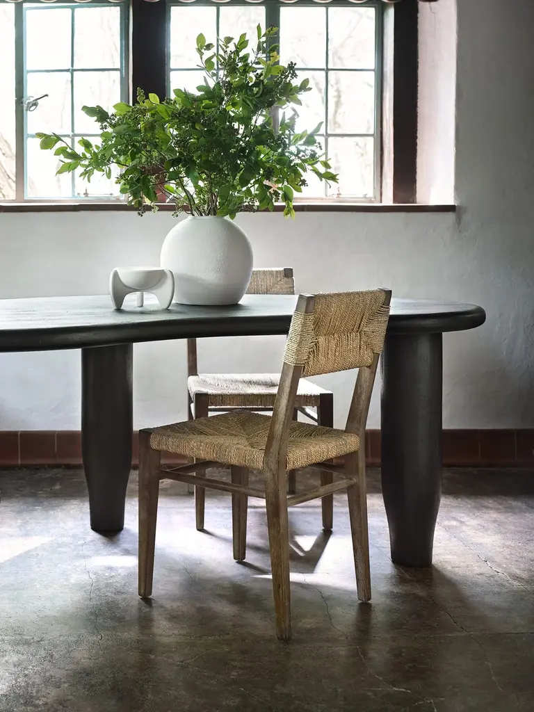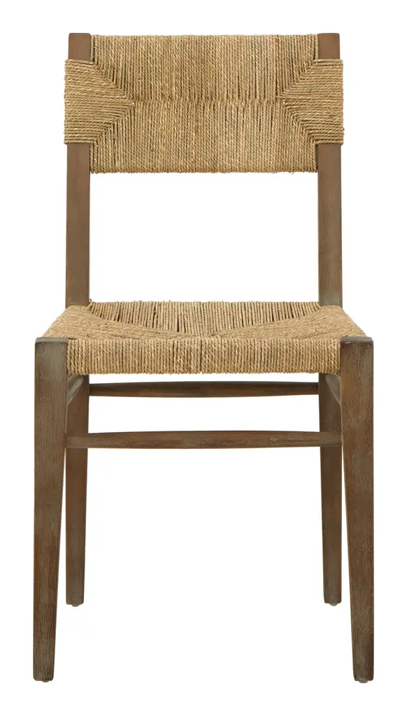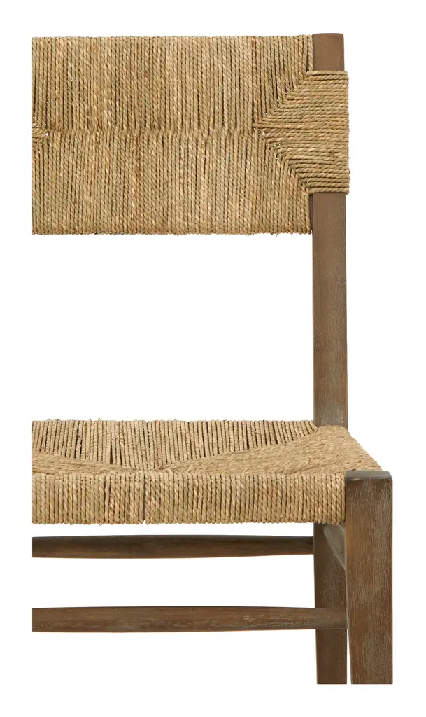 There’s no better way to bring a touch of texture to the dining room than our rustic-chic Cahill Dining Chair. Simple and clean-lined in design, Cahill pairs a cerused rubber wood frame with a backrest and seat that are crafted entirely from sturdy woven seagrass. Not to mention, its straight back and perfect proportions also make for a supportive, comfortably upright sit. Right at home with just about any decor style, we love Cahill in multiples grouped around a kitchen breakfast nook or adding a bit of earthy elegance to a casual dining table. •seagrass •rubber wood •cerused finish Dimensions •18.25"W x 21.25"D x 33.5"H•seat width: 18.25"•seat depth: 17"•seat height: 18.5"H