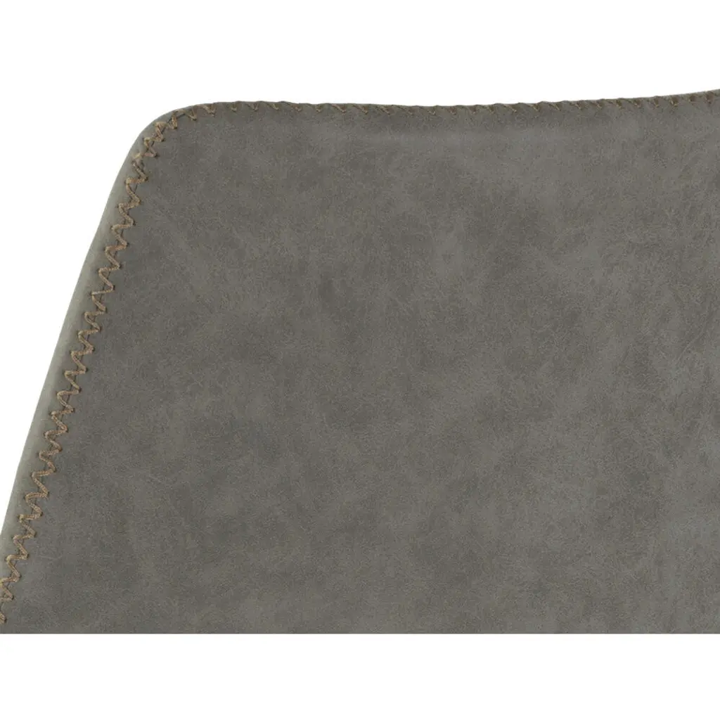 A comfortable and compact dining chair from. Features a simple, mid-century silhouette and finished with a brushed black steel frame. Stocked in antique grey faux leather. Handle With Care: This design has been crafted with faux leather. Faux leather is manufactured to reflect the natural characteristics of leather as such, colour variations, markings wrinkles, grooves, and light scratches are appreciated characteristics. No two pieces will be alike. Visit our Product Care page for more information on how to ensure the lasting beauty of this piece.