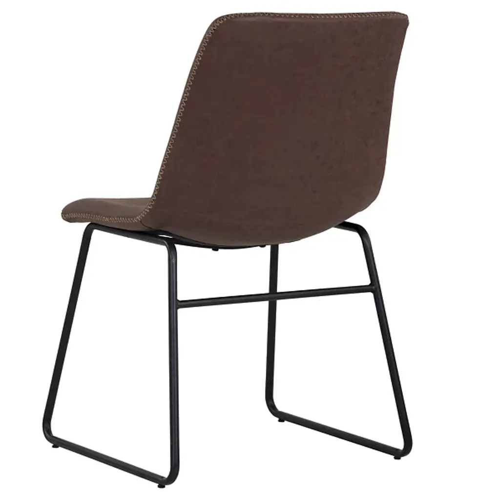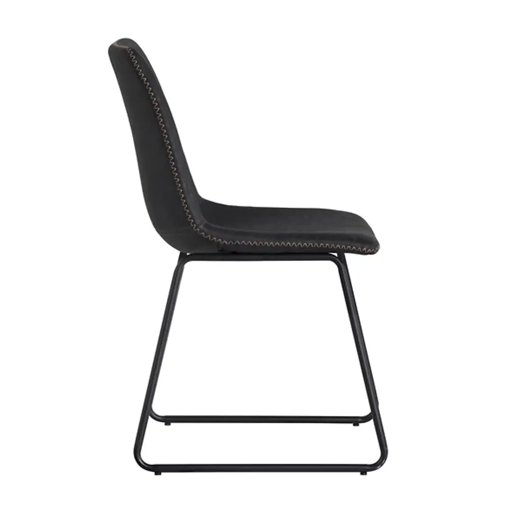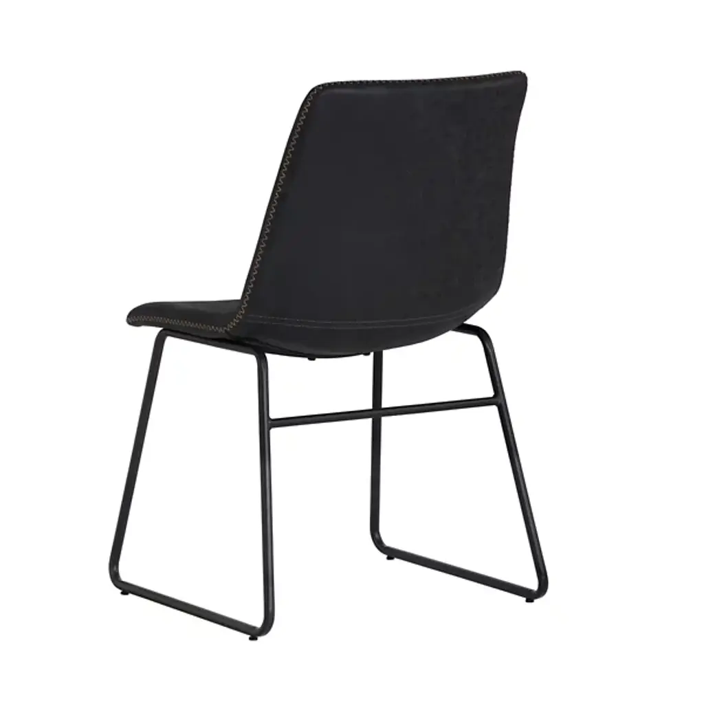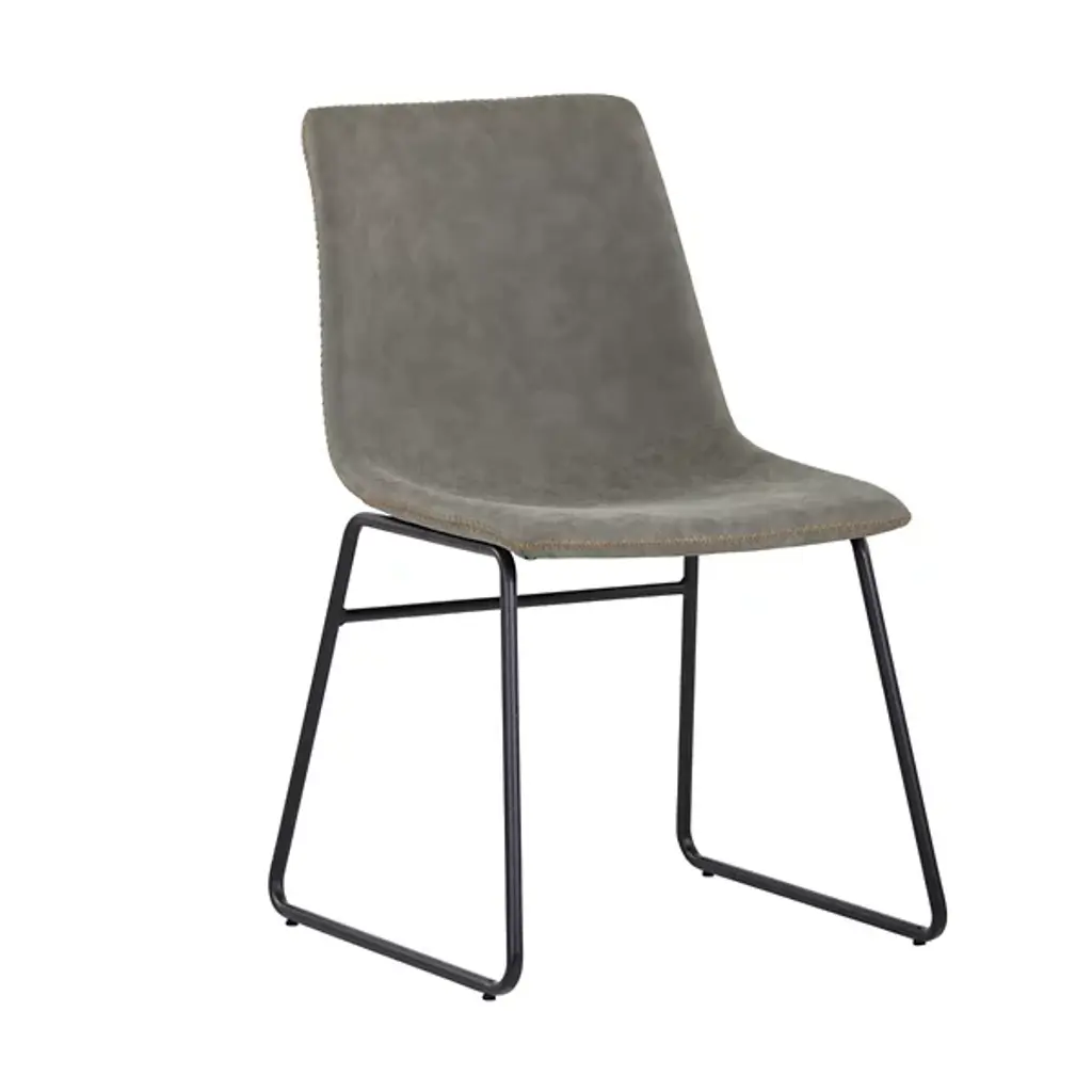 Presented by Alder & Ore, the Cal Dining Chair, offers a combination of comfort and compact design. The chair features a minimal mid-century silhouette that adds a touch of elegance and simplicity. Its clean-lined sled legs, crafted from steel, provide both stability and a modern aesthetic. The Laguardia Dining Chair is wrapped in faux leather, meticulously crafted to exude the same aesthetic as naturally derived leather. This attention to detail ensures that each chair is unique, as no two pieces are exactly alike.