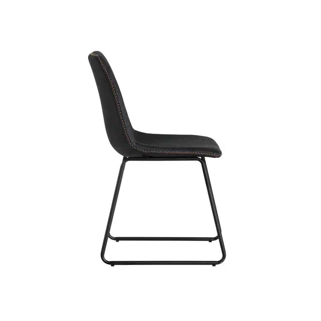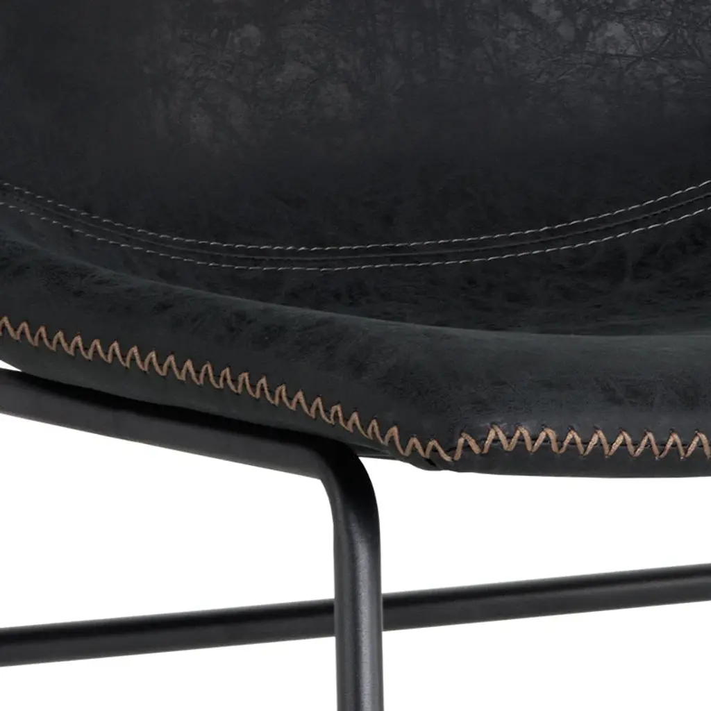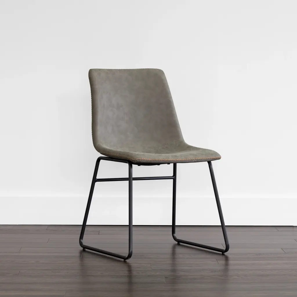 Elevate your dining experience with the Cal Dining Chair (Set. of 2) from Sunpan Crafted with faux leather for comfort and durability, the sleek, mid-century silhouette and brushed black steel frame exude sophistication. Each chair is unique, with natural leather markings adding character and charm to your well-appointed interior. Highlights