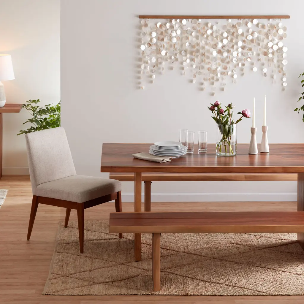 Exuding elegant minimalism, our exclusive Caleb upholstered dining chair brings elevated design and beauty to wide array of dining room styles. Textured fabric in oatmeal or teal introduces visual interest to its sleek profile, and its tapered legs in a walnut finish subtly evoke mid-century-modern aesthetics. Stylish and versatile, this set of two chairs lets you create the comfy, stylish setting for your dining area.