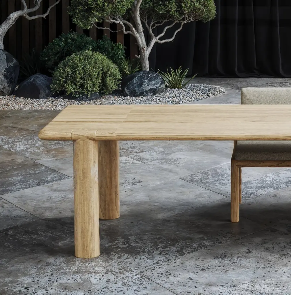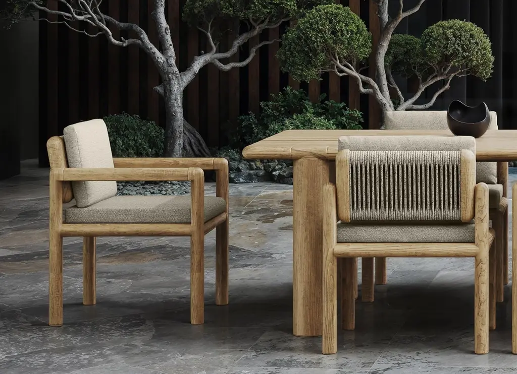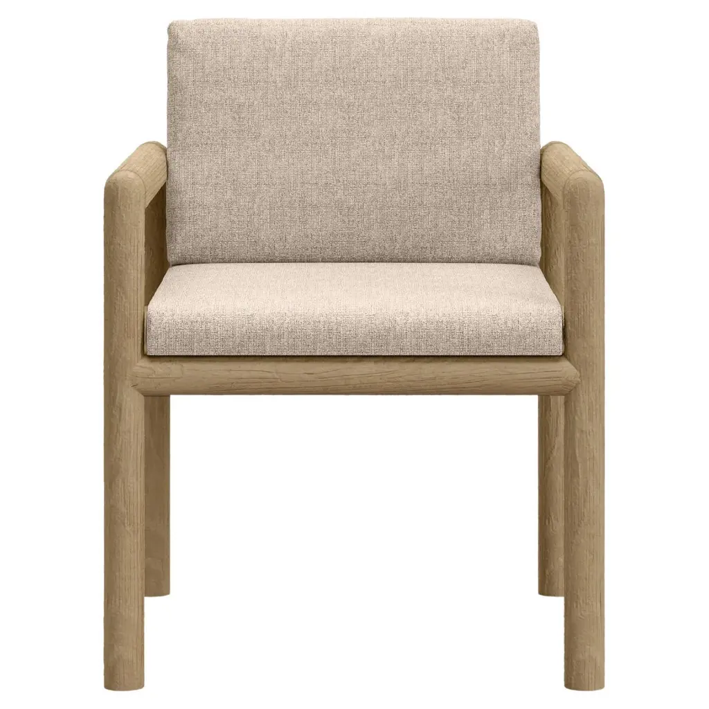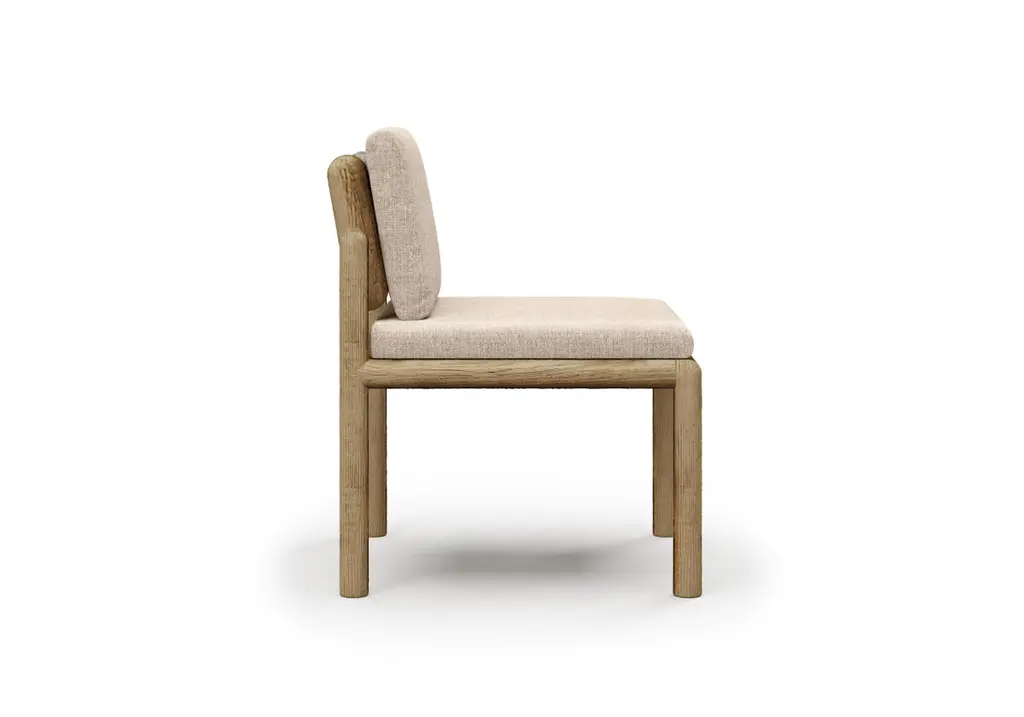 Caleo-Natural Teak Wood Frame, Rope And Ethereal Fabric Dining Chair by SNOCDimensions: D 66 x W 62 x H 76 cm. SH: 48 cm.Materials: Teak wood, rope, and Ethereal fabric. The Caleo Collection embodies understated luxury, blending contemporary form with timeless materials. Designed for both outdoor settings, this modular lounge series prioritizes comfort and adaptability, offering sleek, minimalist lines that define the space while providing unmatched flexibility. Crafted with a refined Ash and Natural Teak wood frame, the collection’s modularity invites creative configurations, allowing each piece to seamlessly adapt to different environments. Upholstered in soft, durable fabrics, the seating offers a tactile warmth that contrasts beautifully with the solid structure, making it a perfect blend of softness and strength.SnocSince their foundation in 2004, SNOC’s history has been interwoven with that of international design. Each chapter written with care, each product reflecting its passion. The company understands that a real story exists behind each object and behind that story, a real person desiring something more. Their ever-developing methodology focuses on defining the core of a brand and utilizing those characteristics to help nurture its soul, aiding in forging real connections. This approach , results in their unique “work in progress” style: original, versatile solutions that in their signature blend of sound, vision and design best-suit every environment and situation, arousing a range of emotions on a daily basis as well as standing the test of time.Driven by functional research, an inclusive project and product culture, and deep care for the environment, we exist as the timeless yet present essence of outdoor furniture design elevating private and public space a like with thoughtfully presented, endlessly adaptive creations.