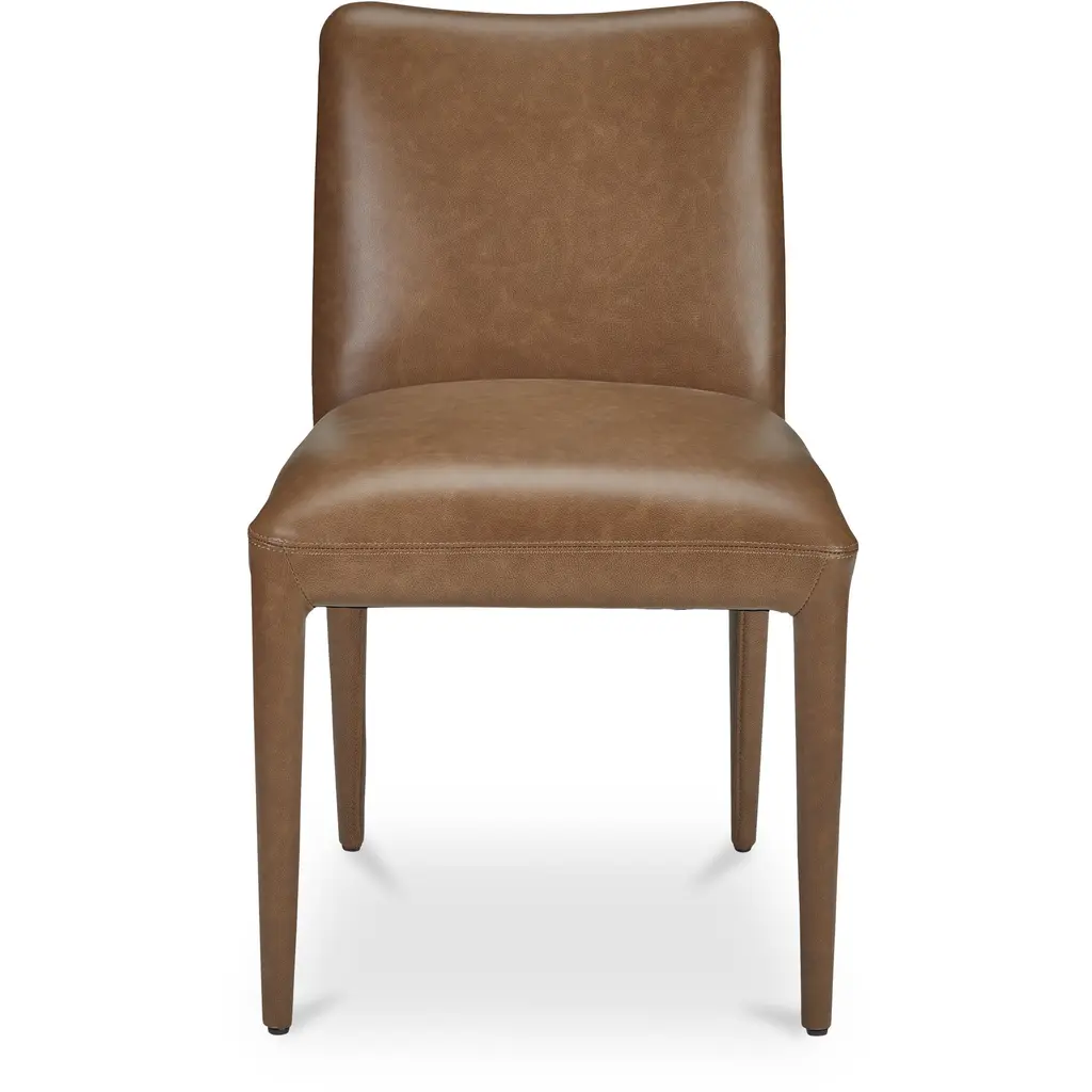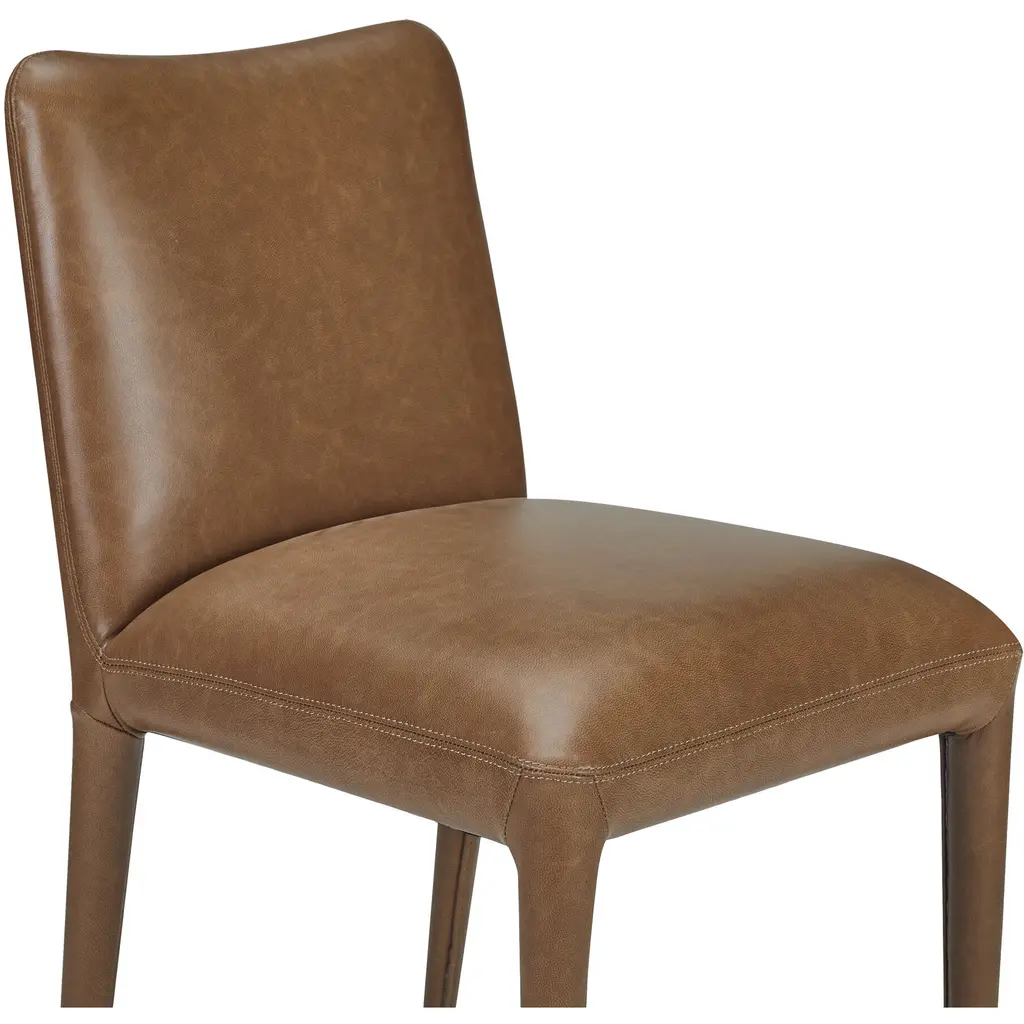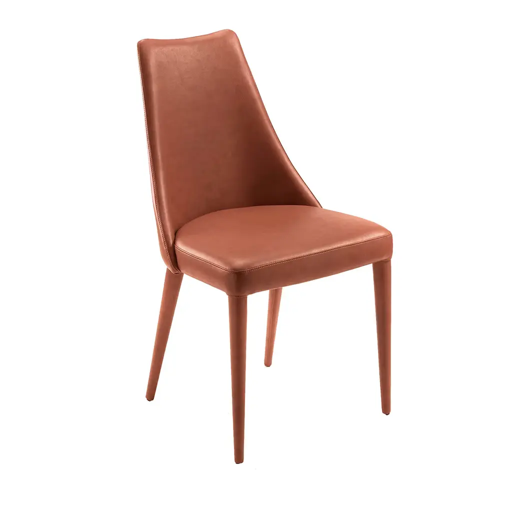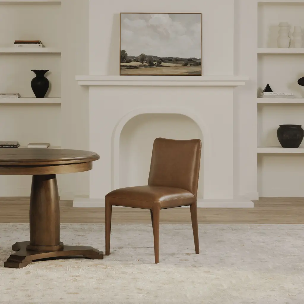 The Calla dining chair is fully upholstered in top-grain leather, generously padded for comfort and constructed with a robust ash wood frame and a rubber wood base. The comforting hue is effortlessly adaptable, allowing the chair to seamlessly integrate with any dining table, regardless of color or style.