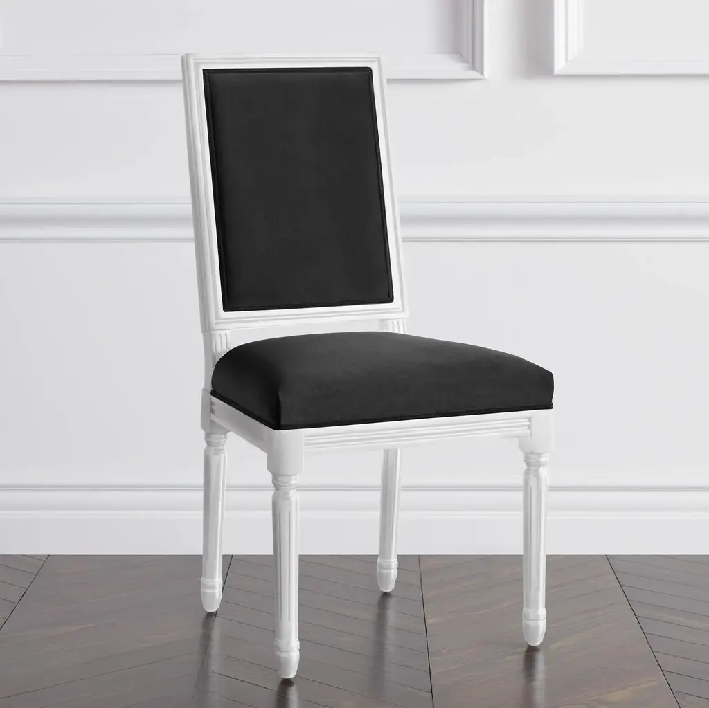 A modern take on the traditional French provincial style. Each chair is handcrafted from start to finish. Its classic upholstery is enhanced by a squared back, fluted legs, and allover high-impact gloss. Shown in Bella Velvet Black.Z Gallerie exclusiveCustom options available, including over 15 fabrics and two finishes.Custom Orders: Custom Furniture is manufactured especially for you, which is why we do not accept cancellations, exchanges, or returns.