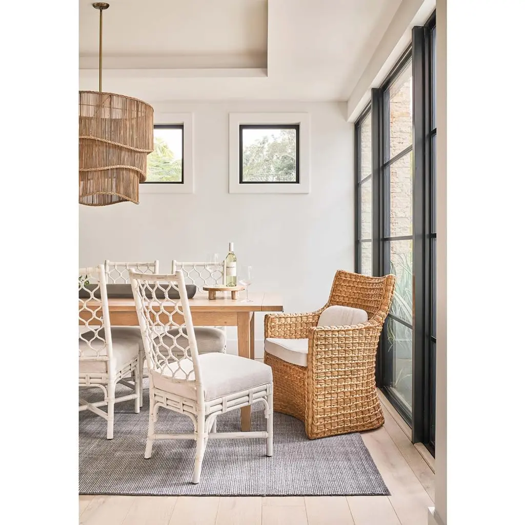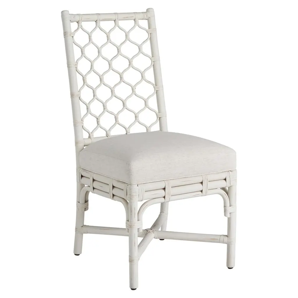 Camilla Coastal Beach Off White Upholstered Rattan Dining Side Chair - Set Of 2