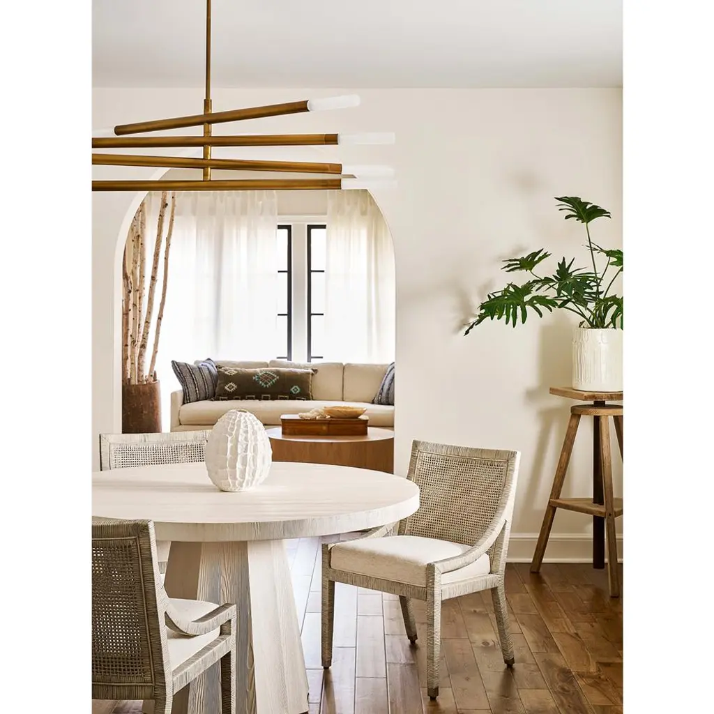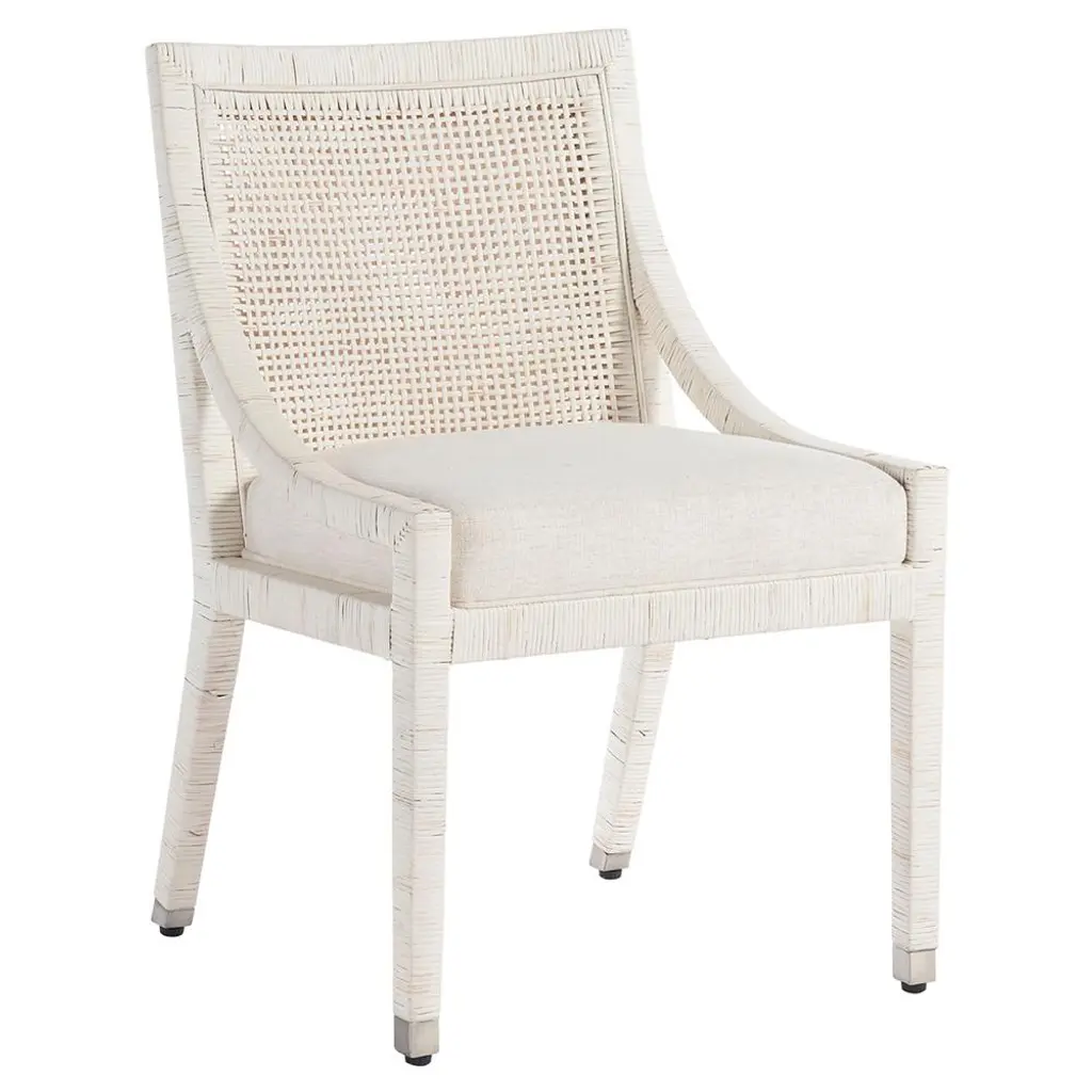 Camilla Coastal Beach Off White Upholstered Seat Woven Rattan Dining Arm Chair