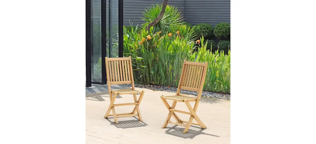 The Campos Outdoor Dining Chair - Set of 2 focuses on contemporary and modern designs, that is perfect for any outdoor space. The dining chair is made of wood materials are made of 100% FSC certified eucalyptus and certified high-quality teak wood.