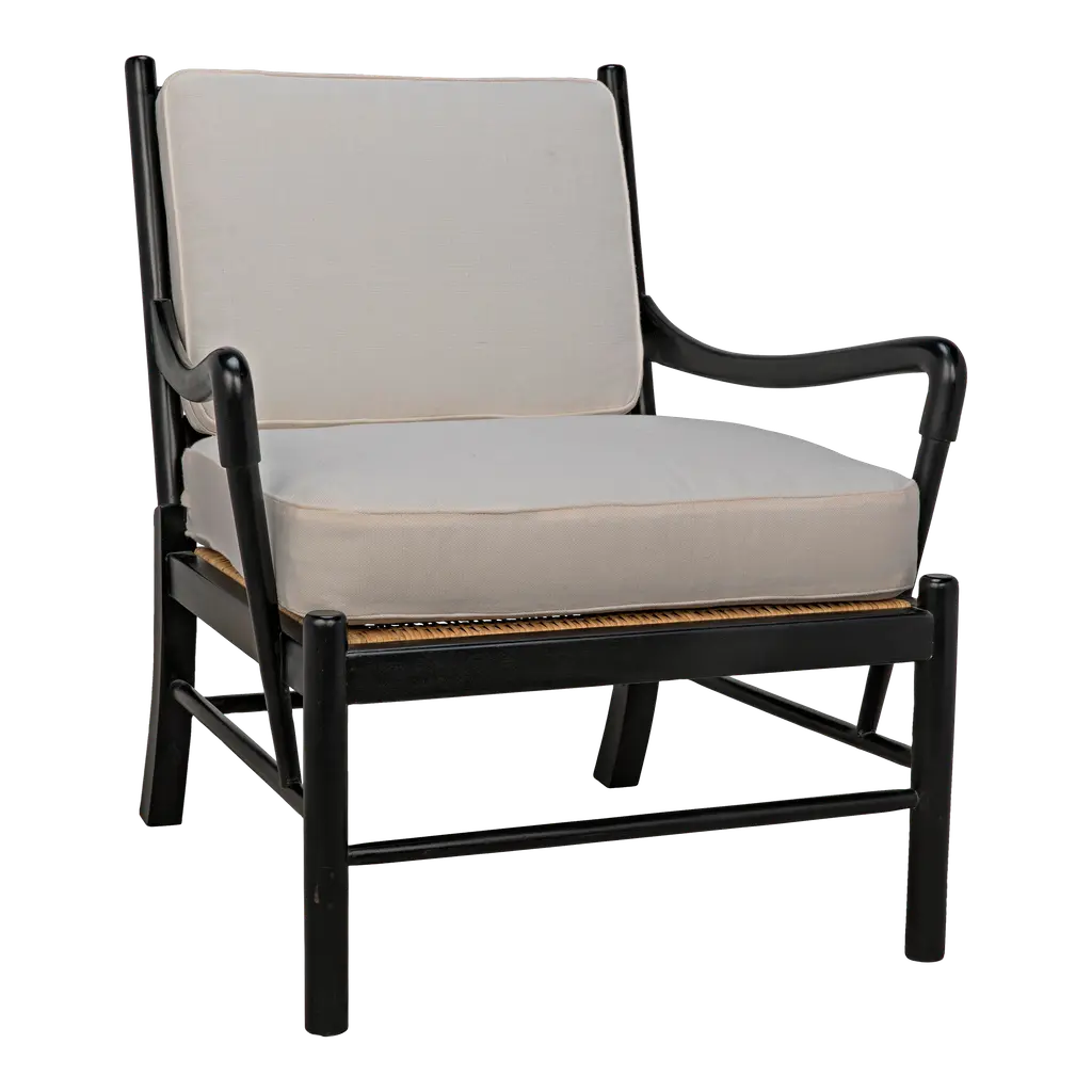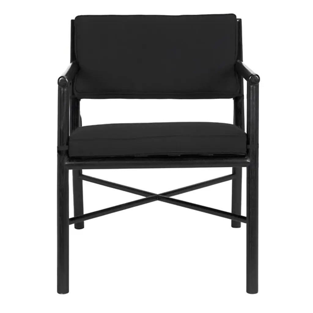 The Camworth Dining Armchair from Noir strips away excess ornamentation to focus on essential elements of comfort and structure. Sungkai wood forms a disciplined frame with clean horizontal and vertical lines that define the chair's architectural presence. Cotton upholstery on both the seat and backrest softens the geometric framework while providing comfortable support. The armrests extend naturally from the backrest, creating continuous lines that guide the eye around the entire piece. Strategic cross-bracing ensures stability without adding unnecessary bulk. This chair brings quiet confidence to dining settings, offering a refined seating solution that complements rather than competes with surrounding elements.