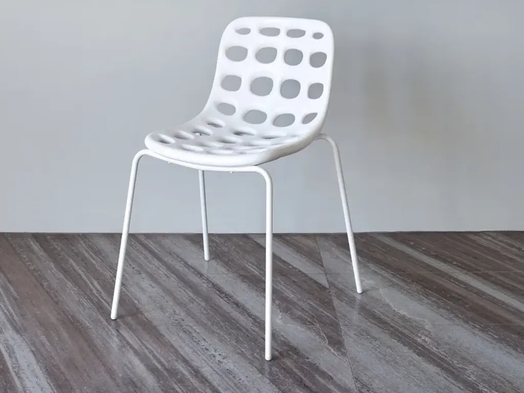 Our Caprice chair is a great indoor or outdoor seating solution that adds unique, modern design to your home. The beautiful, flowing design of the chair is enhanced by bold color options and a glossy, durable nylon seat that's made to withstand the outdoor elements. A matching painted steel base adds a touch of modern flair. Plus, you can stack up to five Caprice chairs to save on space. This commercially-rated outdoor chair is exclusive to Room & Board in the U.S.