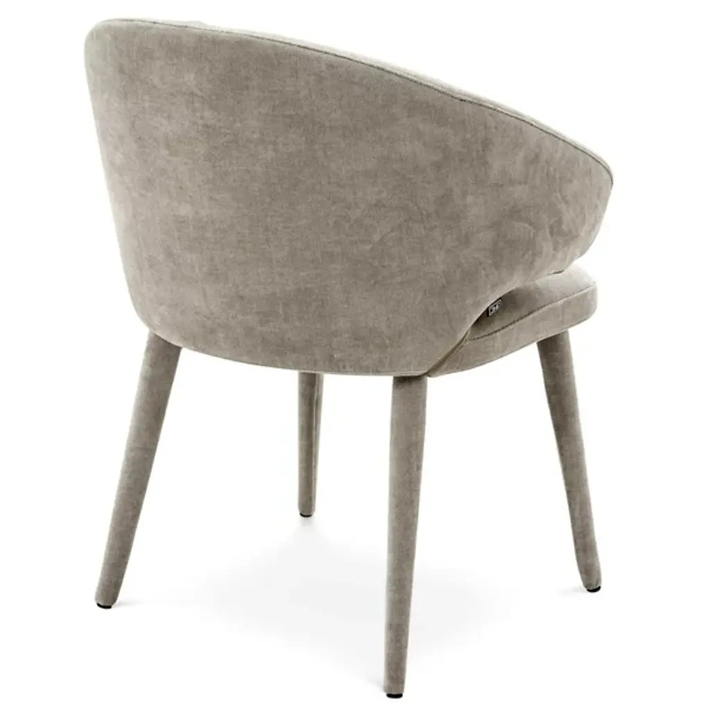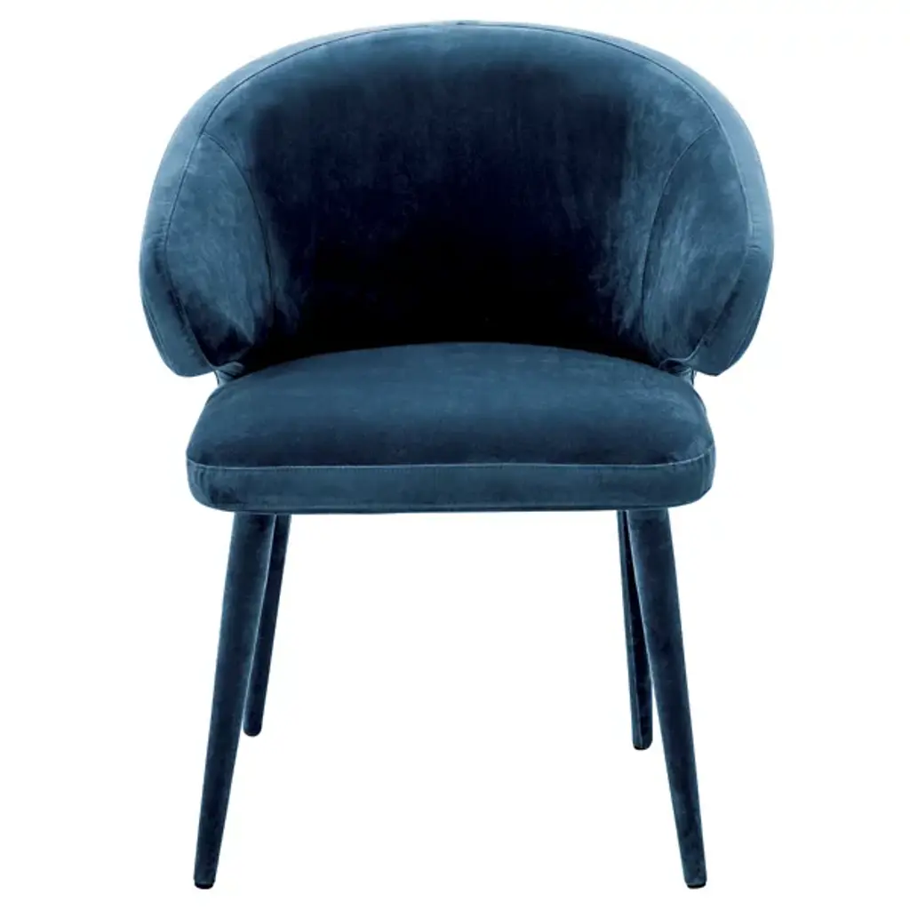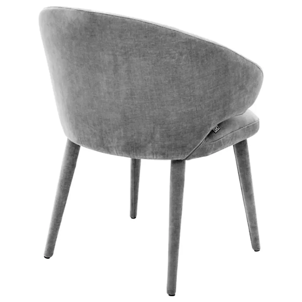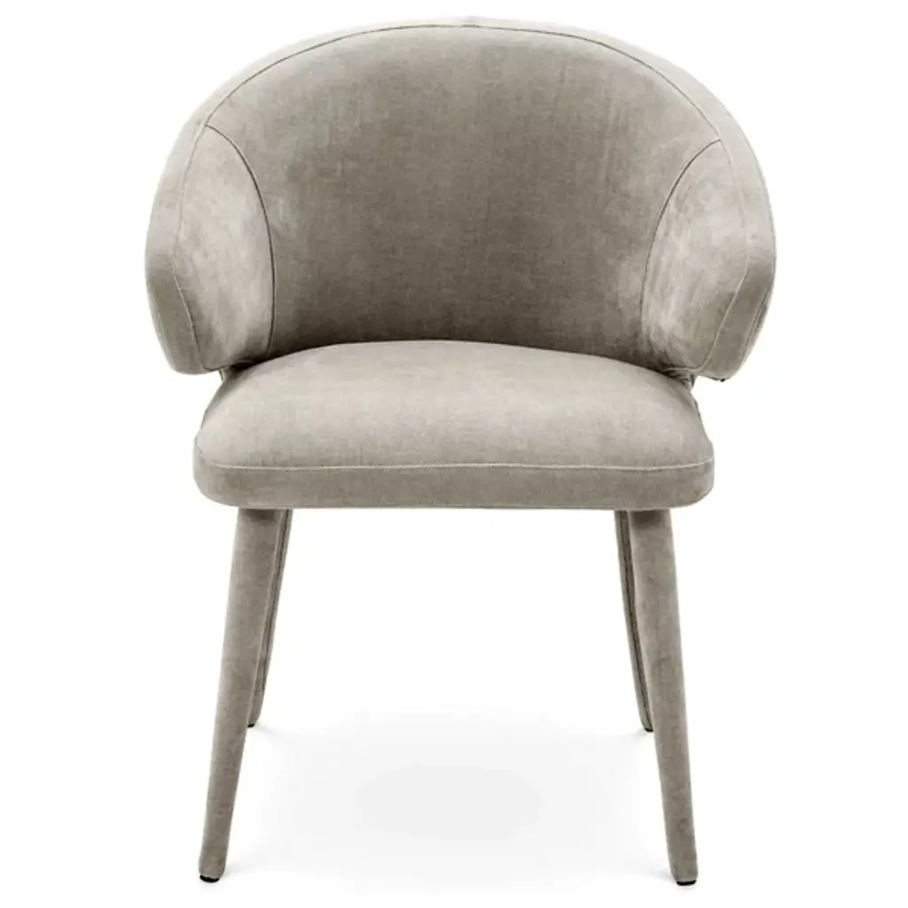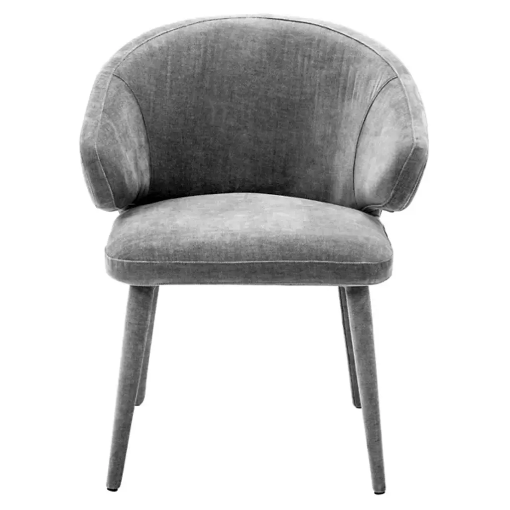 The Cardinale Dining Chair from Eichholtz gives your living space a contemporary sense of design. This chair is defined by its contoured seatback, which seamlessly tapers at the sides to form supportive arms. Cardinale provides postural support as you sit before your favorite meal. Your dining chair is crafted by hand and is upholstered with 100% polyester for your comfort. Tapered legs of iron keep this chair elevated while adding a touch of refinement