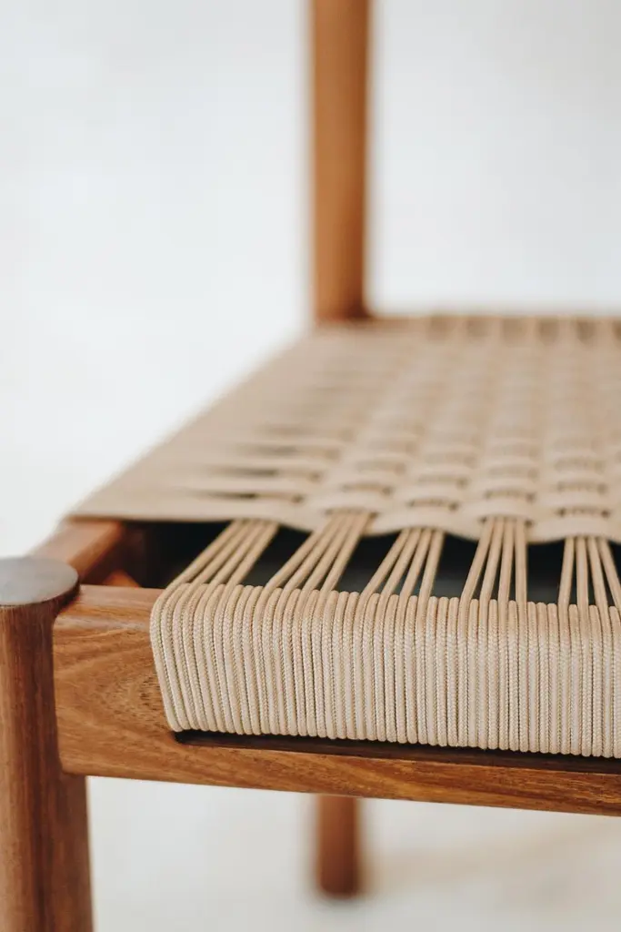 Inspired by the work of Luis Barragán, the Sáasil Chair features an honest construction with precise details. It is a comfortable chair, with a lightweight yet sturdy structure that frames the seat, handwoven by local artisans using cotton or nylon rope. It is available with weavings in a variety of colors.finish : waxavailable in: Caribbean Walnut_Our pieces have a finish based on natural waxes and oils that protect the surface, accentuate the grain and texture and preserve the warm feeling of the wood.All the wood that we work with to create our pieces comes from local "ejidos" (communal land) with responsible forestry management programs and certificates._Wood is a natural and organic element. It will vary in color and grain according to each wood plank’s unique characteristics and applied finish. The image shows only one hue of many, making each chair a one-of-a-kind piece of furniture.