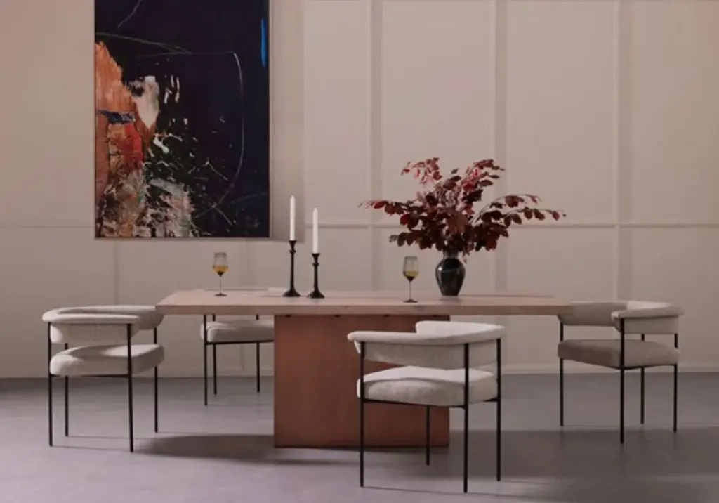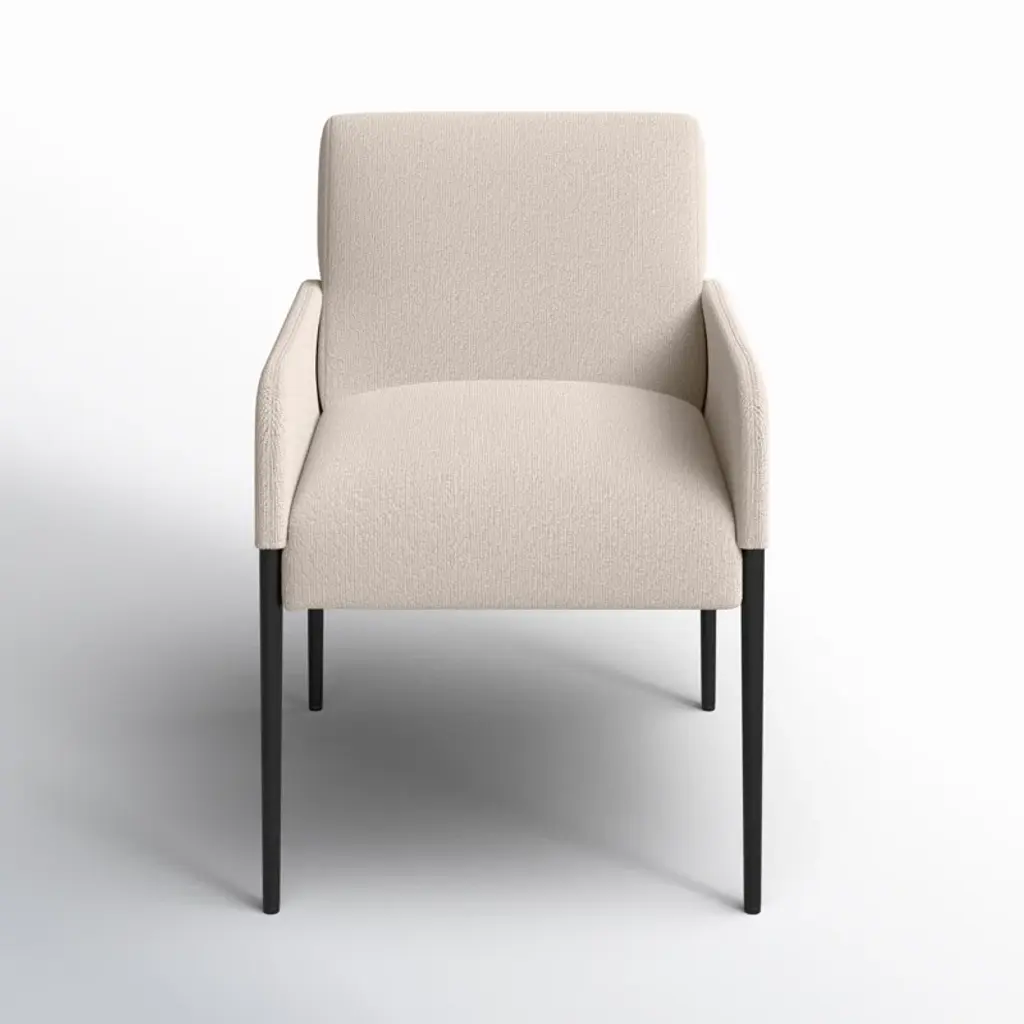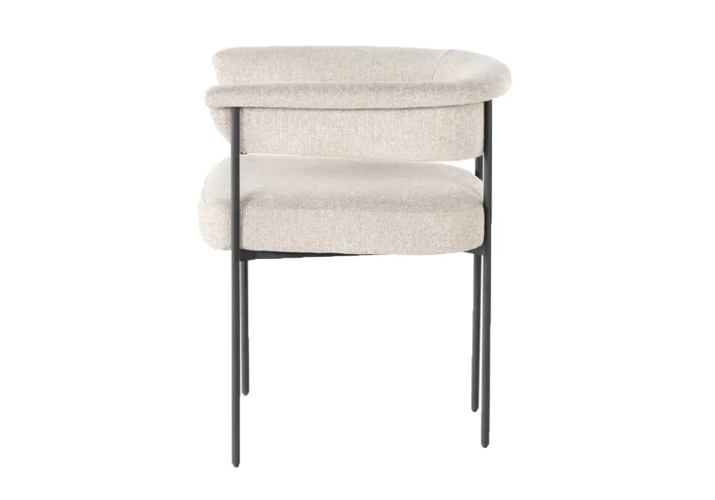 The Carrie is a sophisticated addition, featuring a thin black-finished iron frame complemented by neutral-colored upholstery. Its air form lends a clean, distinguished look. Also available in a Counter Stool .