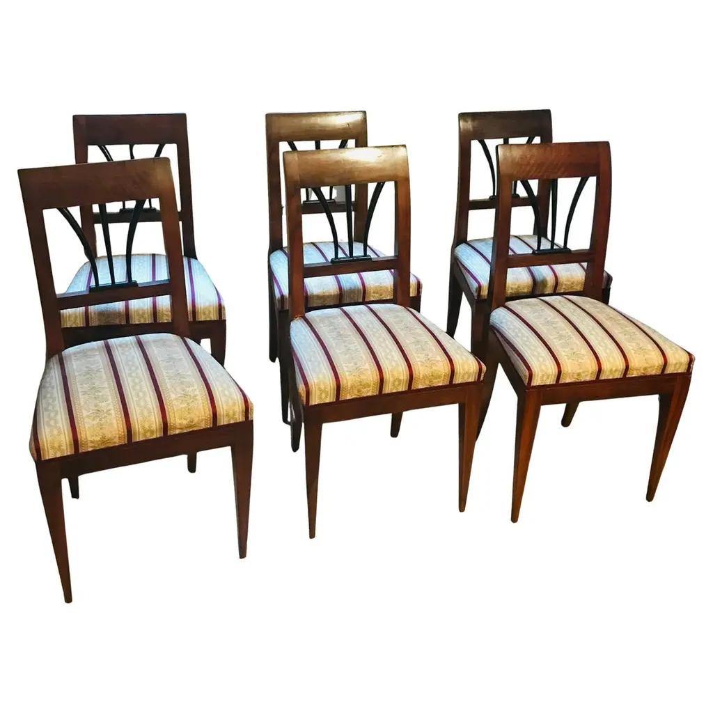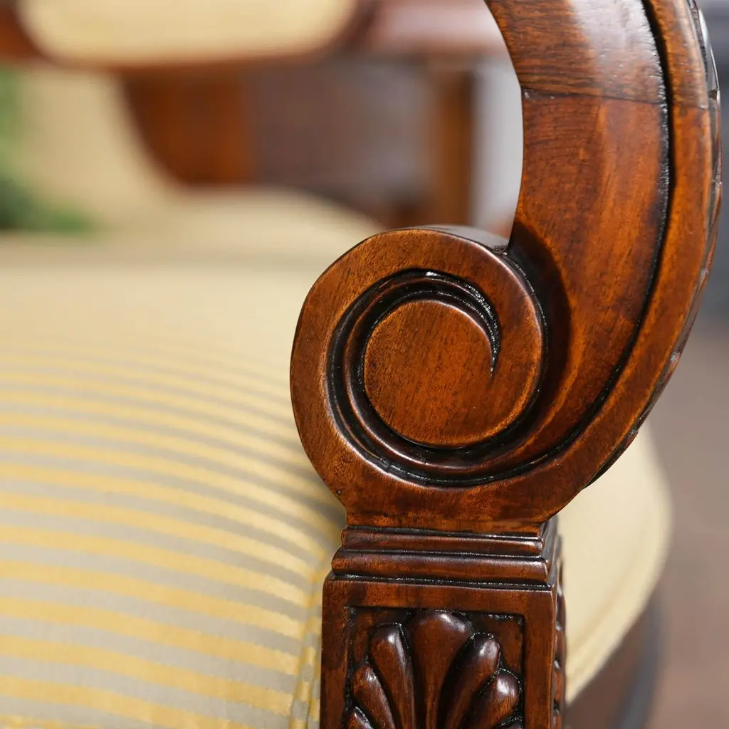 Carved Empire Upholstered Chairs, Set Of 10