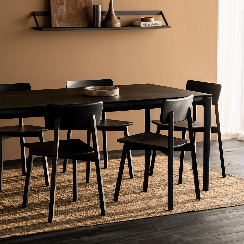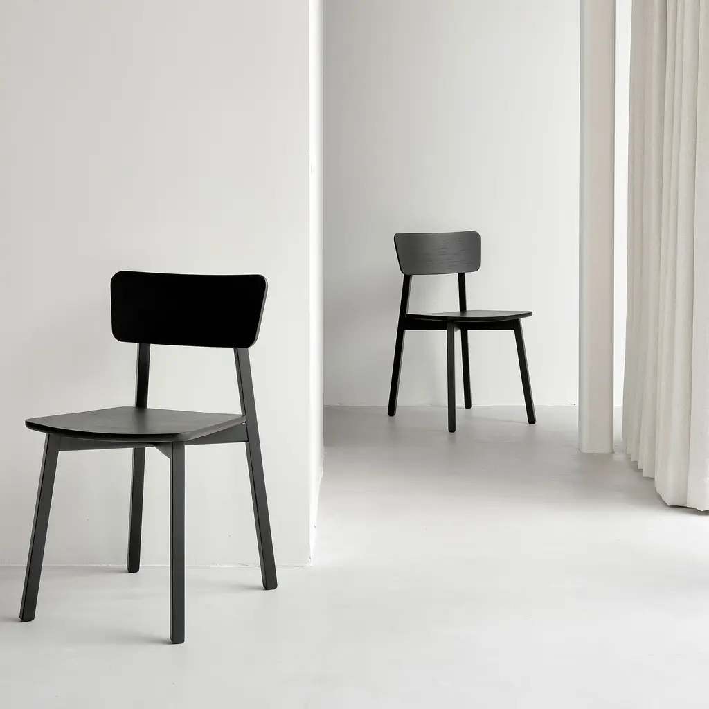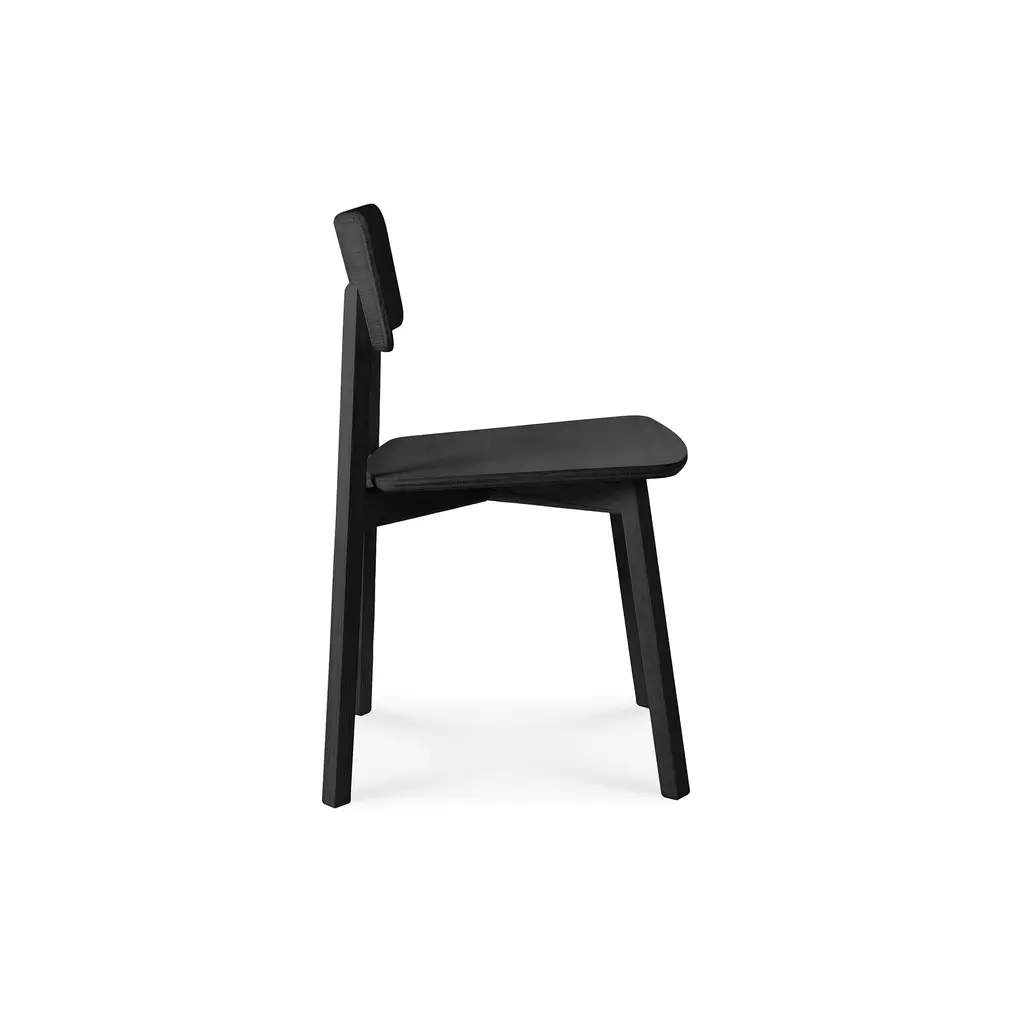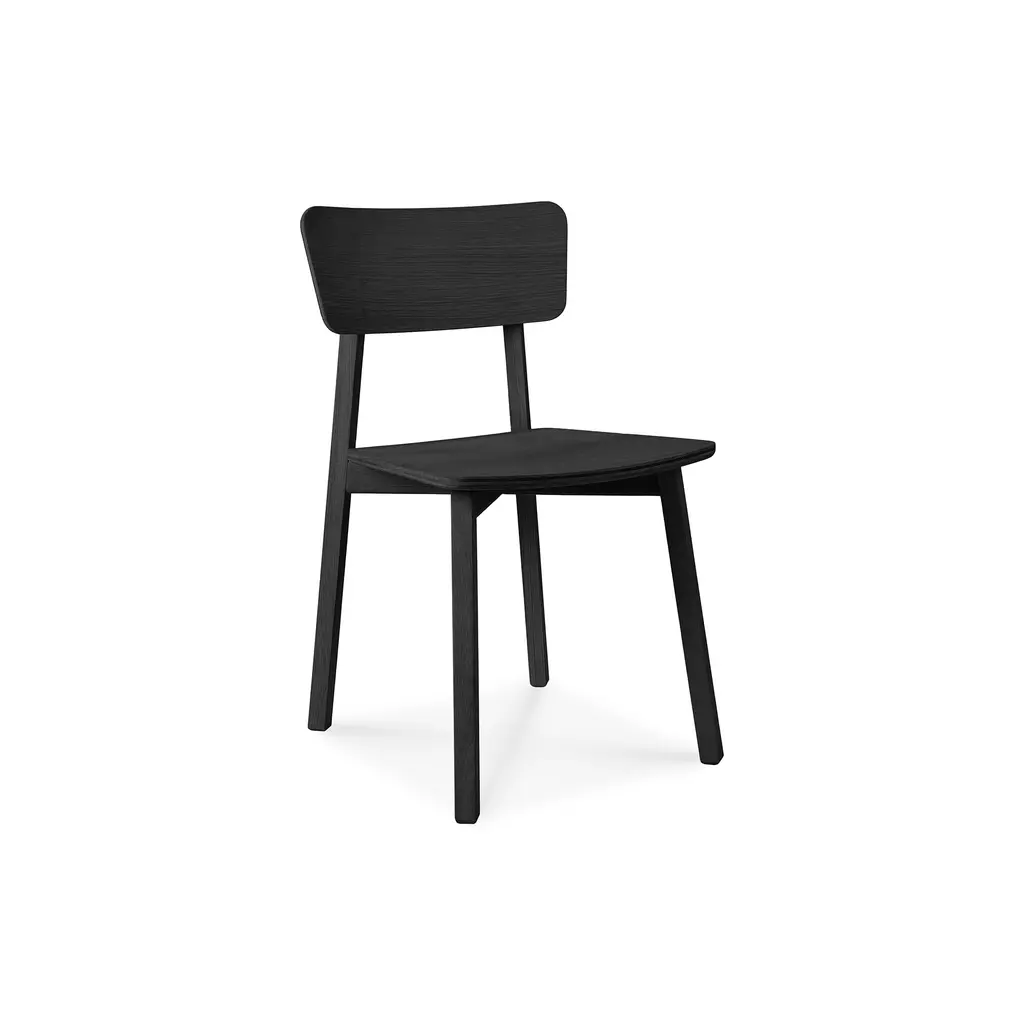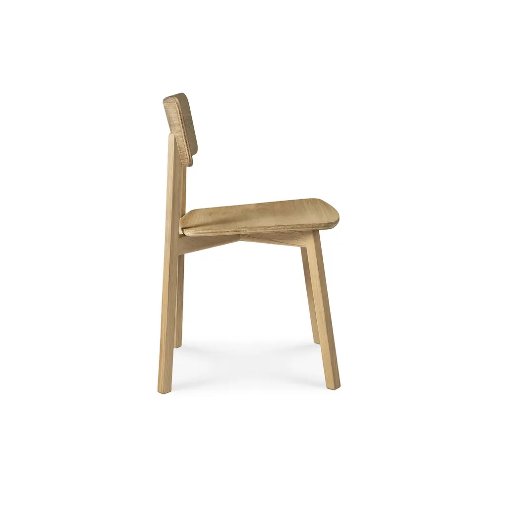 Exploring the expressiveness of simplicity, Studio Kaschkasch created the Casale dining chair with a graceful, delicate silhouette. Part of the Ethnicraft collection, the chair is incredibly versatile thanks to its restrained style and clean lines. The slender legs have a rectangular form while the seat and backrest are subtly curved and feature rounded edges. Manufactured from solid wood, Casale boasts handmade wooden details that showcase the beauty of traditional craftsmanship. Floor protectors shield more delicate flooring surfaces from scratches while making these minimalist dining chairs slide smoothly on polished floors. Available in two finishes, the Ethnicraft Casale Dining Chair complements any home decor.
