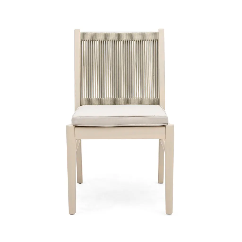 Cascade Outdoor Acacia Wood Dining Chairs With Cushions (Set Of 2) By Christopher Knight Home - Bleach+grey Rope