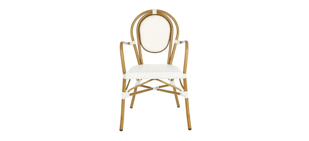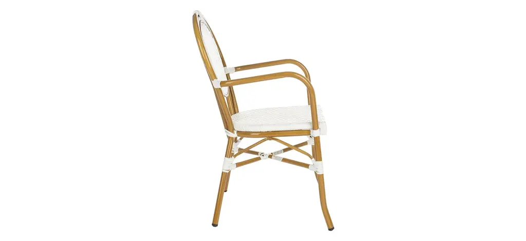 The Casella arm chair is a design investment. Its classic wicker curves feature a stylish white finish that brings instant chic to any kitchen or outdoor room.